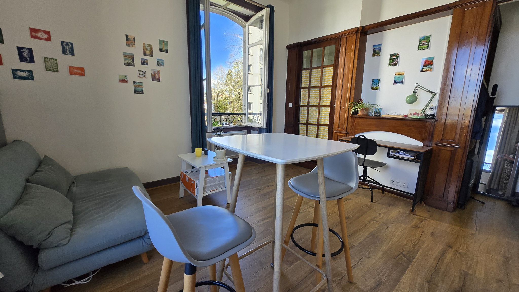 Ce adorable studio particulièrement lumineux et ensoleillé est situé au coeur du quartier Marracq à quelques minutes de Saint Léon, au 1er étage d’une magnifique villa divisée en appartements.