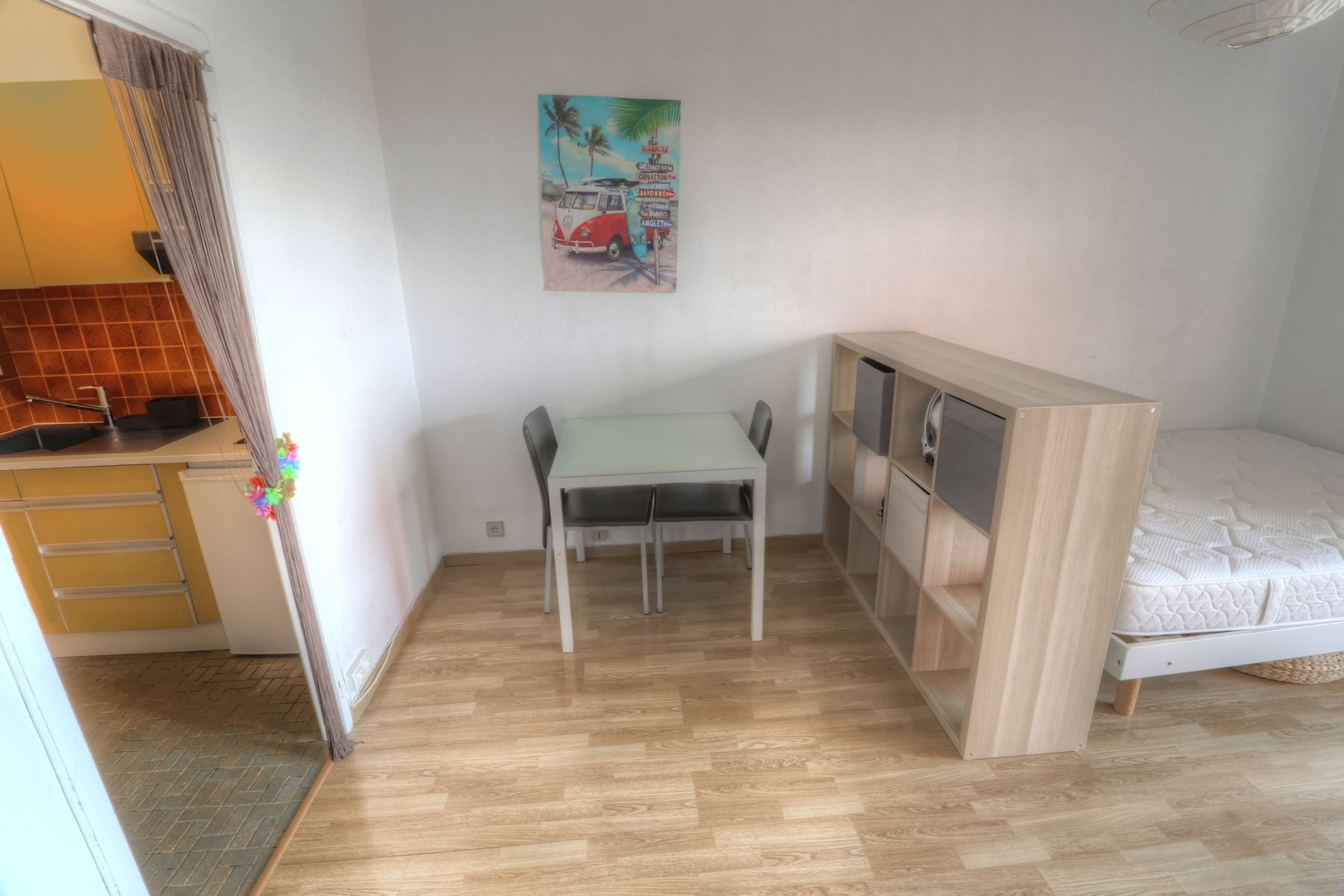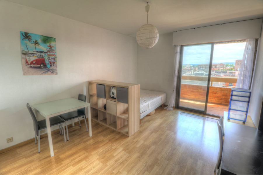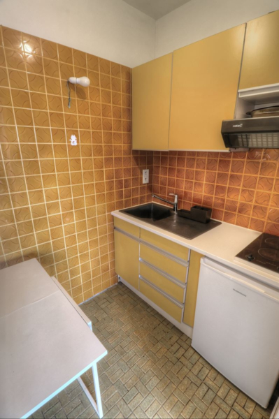 Il se compose d’une entrée sur dégagement desservant un belle pièce principale donnant sur balcon et comprenant une cuisine aménagée et équipée d’un domino vitrocéramique, d’une hotte et d’un réfrigérateur top et une salle de bains avec W.C.