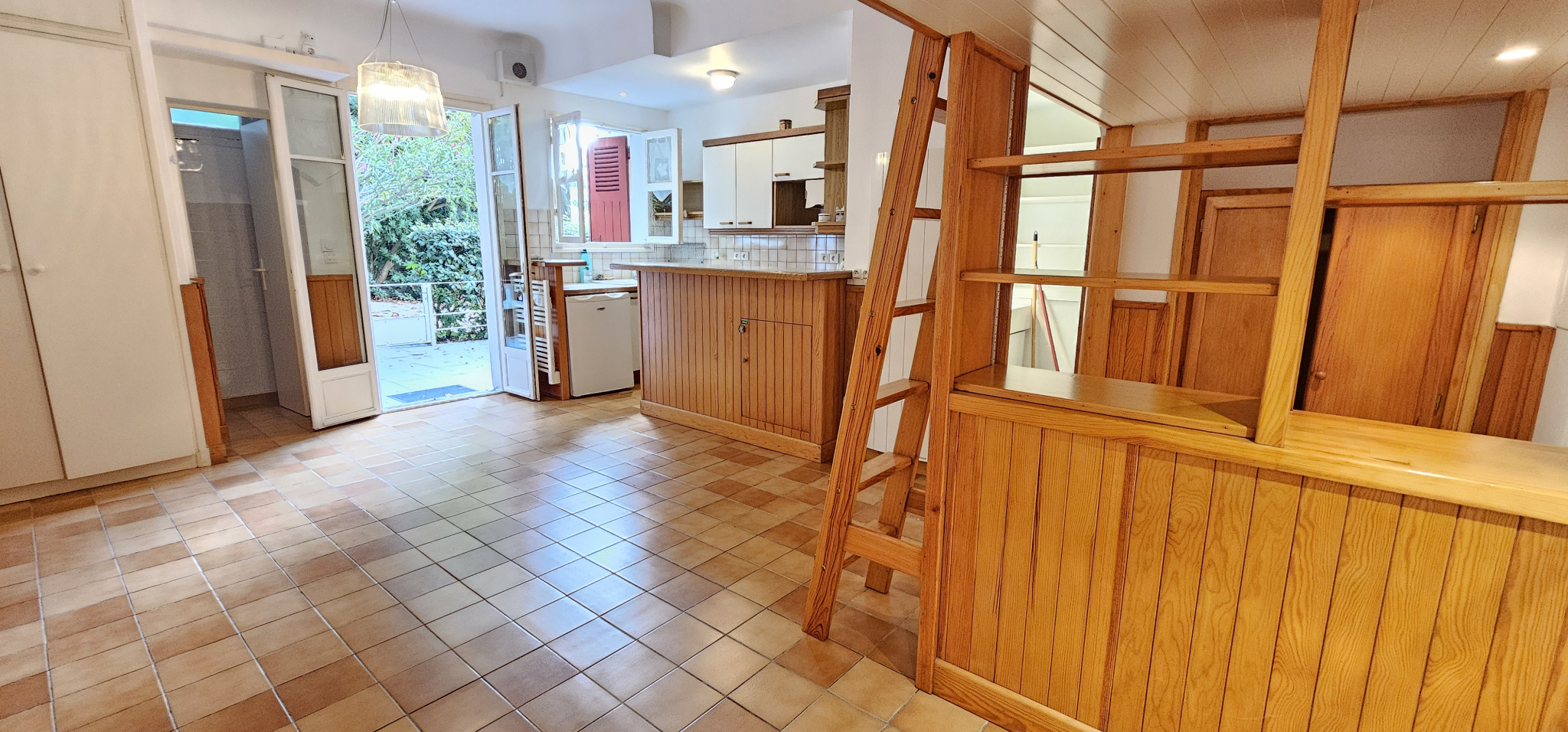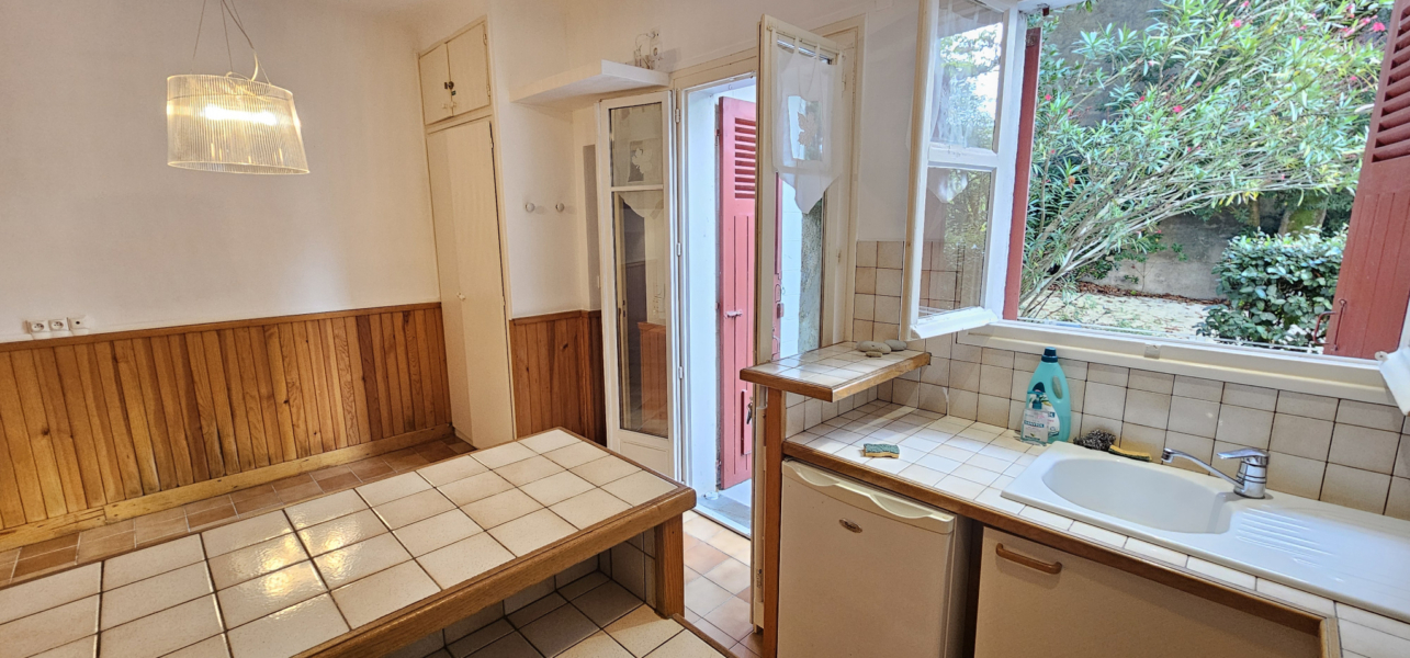 En rez-de-chaussée d’une superbe demeure bourgeoise sécurisée, on accède à l’appartement par une adorable terrasse à l’abri des regards ouvrant sur la pièce à vivre avec cuisine aménagée et équipée, coin salon avec canapé convertible, mezzanine avec couchage, coin bureau et salle d’eau avec wc.