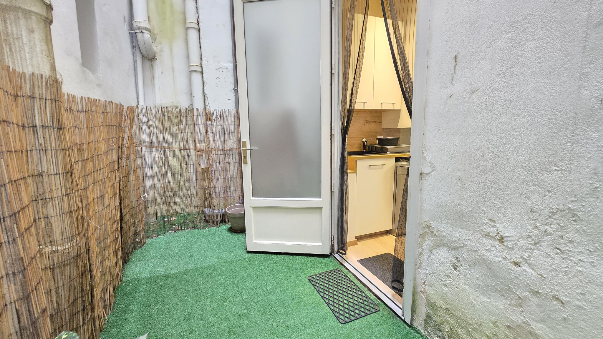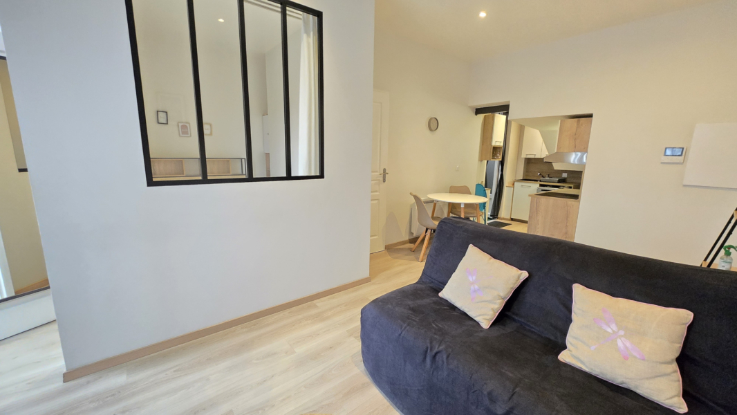Il se compose d’une entrée sur un beau séjour avec cuisine aménagée le tout donnant sur une courette arrière à l’abri des regards, d’une pièce annexe à usage de chambre et d’une salle d’eau avec wc.