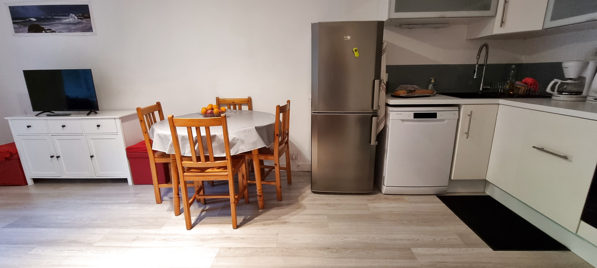 Cet appartement meublé de type 2 bis est situé dans un quartier calme à proximité immédiate des plages de la Chambre d’Amour ainsi que des commodités des Cinq Cantons, au rez-de-chaussée surélevé d’une résidence récente.