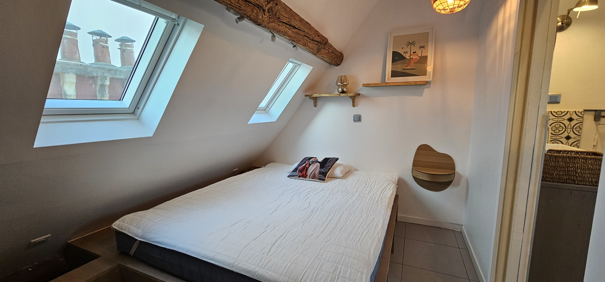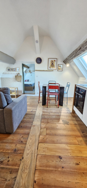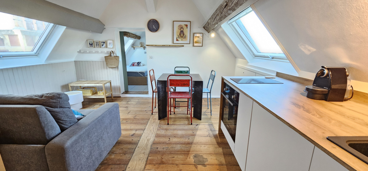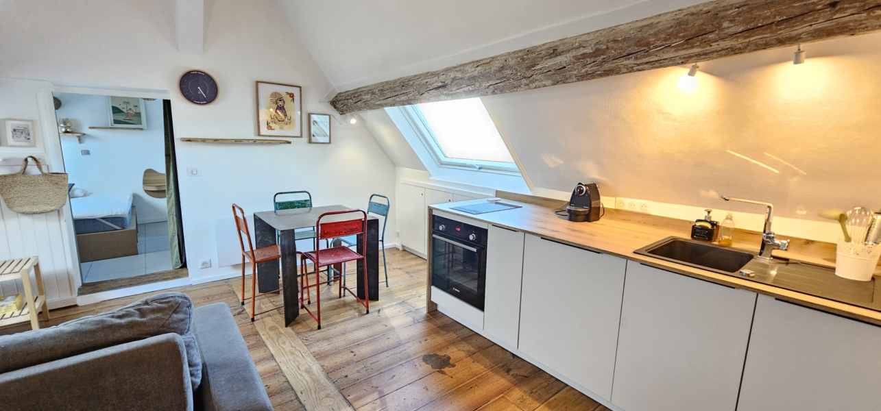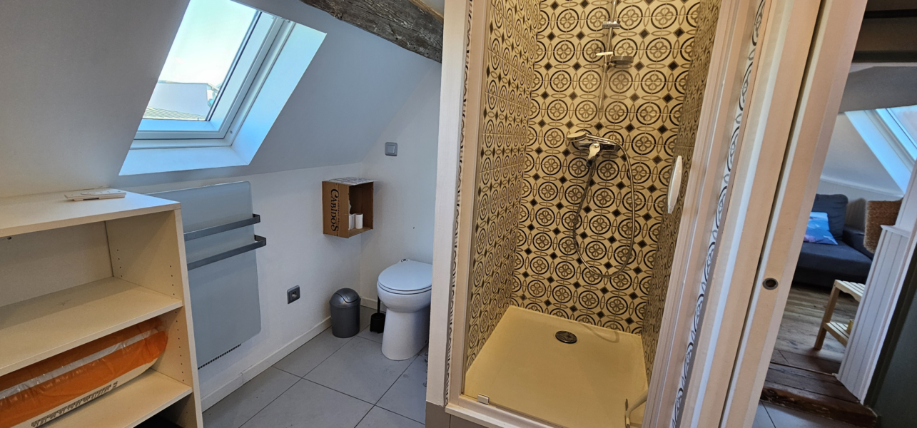 Il se compose d’une entrée sur séjour avec cuisine aménagée et équipée, une chambre avec rangements et une salle d’eau avec WC.