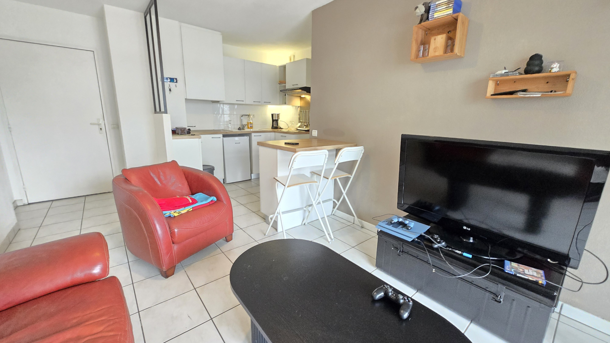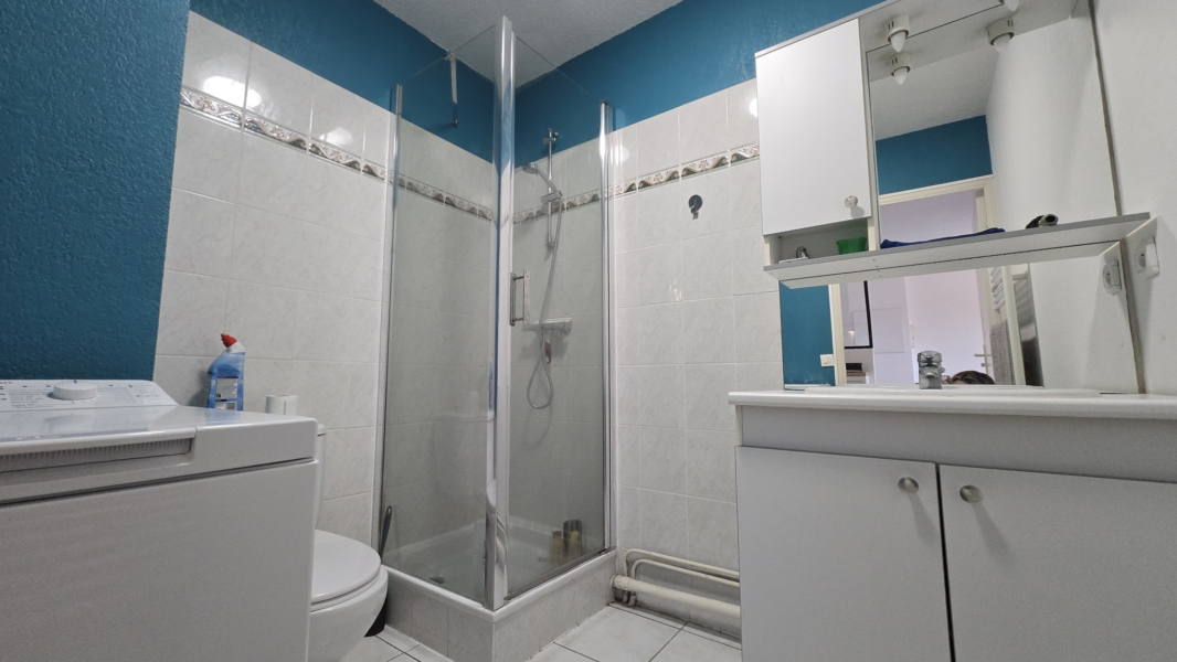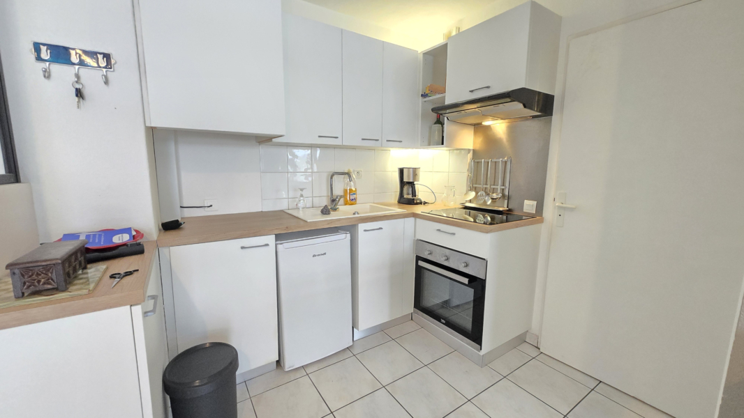Il se compose d’une entrée sur dégagement desservant un séjour avec cuisine aménagée donnant sur balcon, une salle d’eau avec wc et une chambre avec placard aménagé.