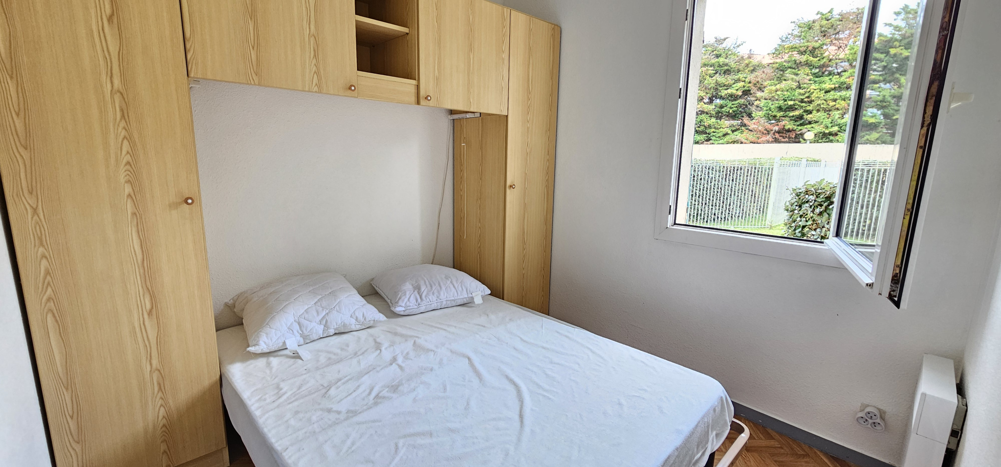 Cet appartement de type 1 bis est situé au rez-de-chaussée d’une résidence récente récente avec piscine érigée au cœur d’un quartier particulièrement calme situé à mi-chemin des plages comme de la ville et de ses commerces tout en étant à proximité immédiate des transports en commun.
