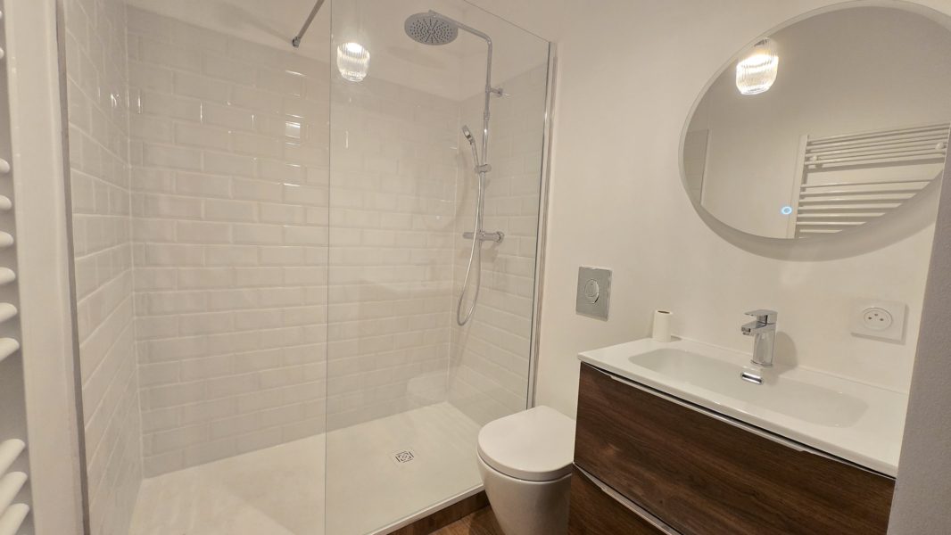 Meublé, il se compose d’une entrée sur dégagement desservant un séjour avec alcove à usage de chambre, d’une cuisine aménagée et équipée et d’une salle d’eau avec wc.