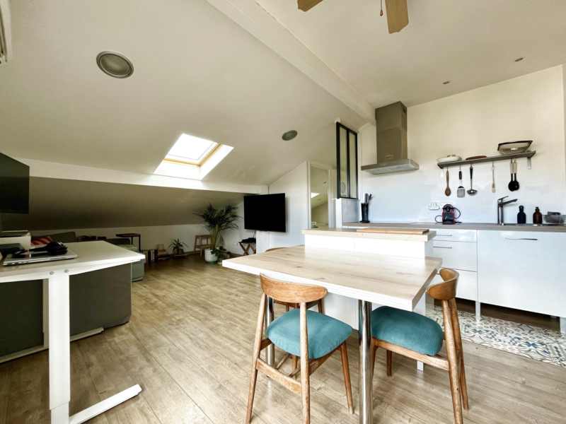 A louer vide, ce beau T2 bis se compose d’une entrée au 1er étage ouvrant sur un dégagement avec escalier desservant l’appartement au niveau supérieur qui se compose d’un couloir desservant un beau séjour avec cuisine aménagée et semi-équipée donnant sur un agréable balcon ensoleillé sans vis-à-vis, une chambre, une autre pièce à usage de coin nuit ou de dressing, une salle d’eau et un wc séparé.