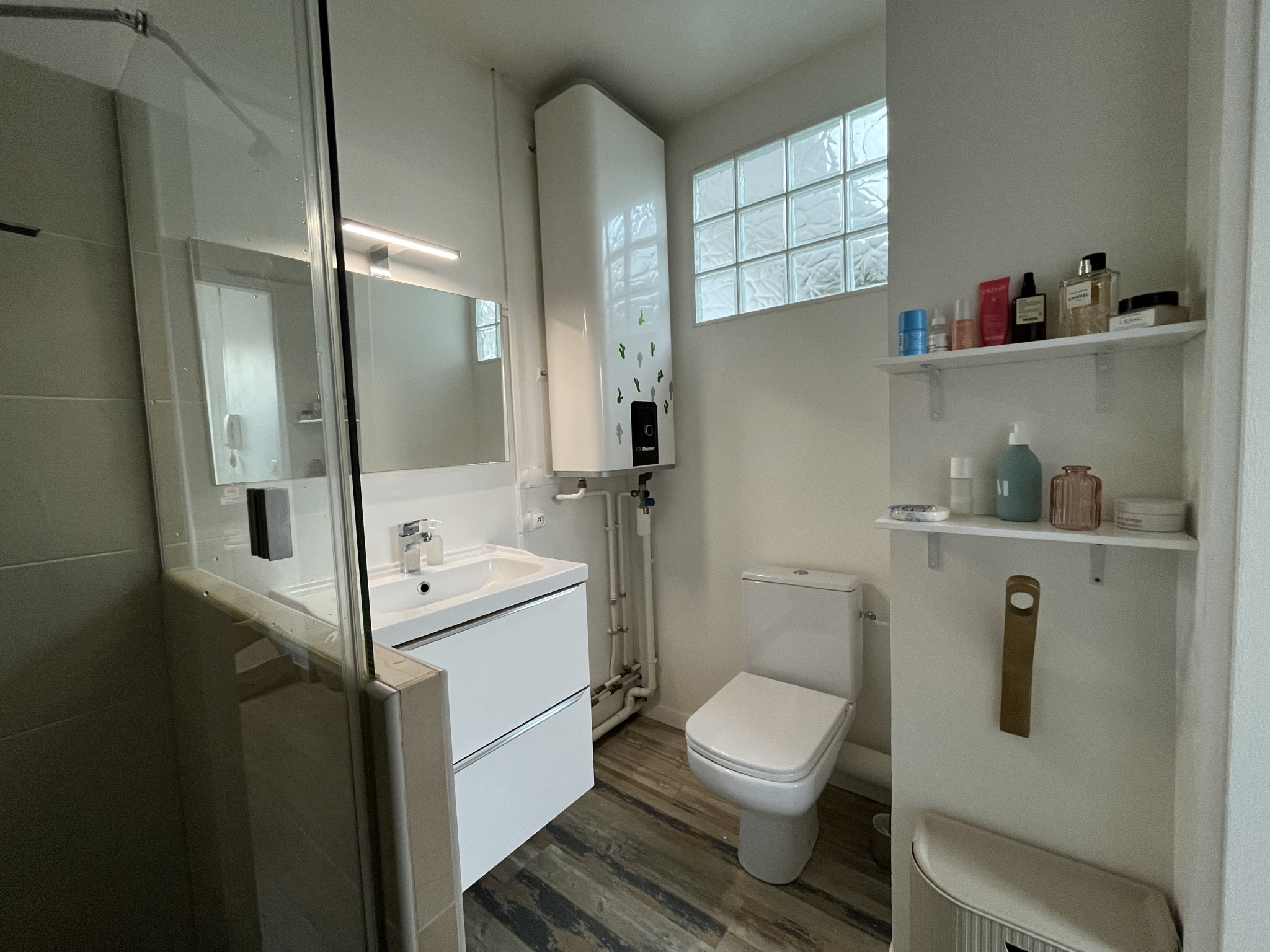 Le chauffage se fait via une pompe à chaleur air/air, réversible afin de rafraichir également les chaudes journées d’été et les menuiseries sont en double vitrage.