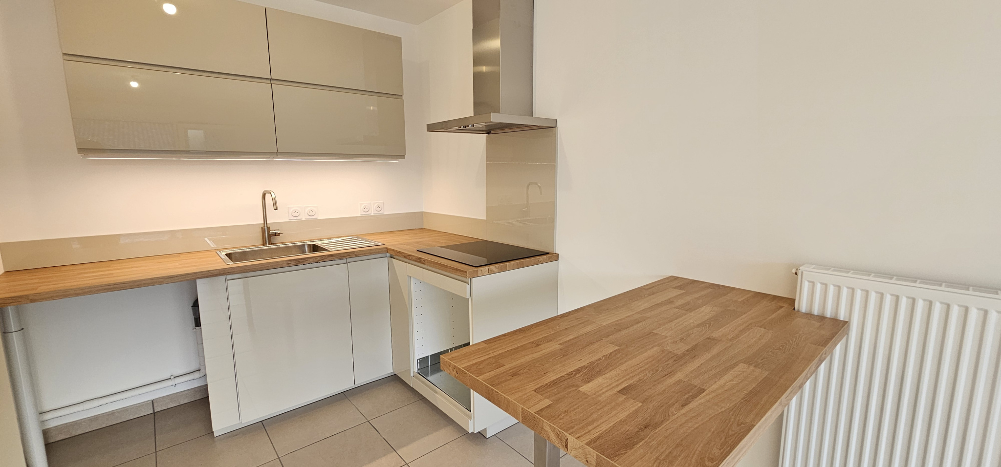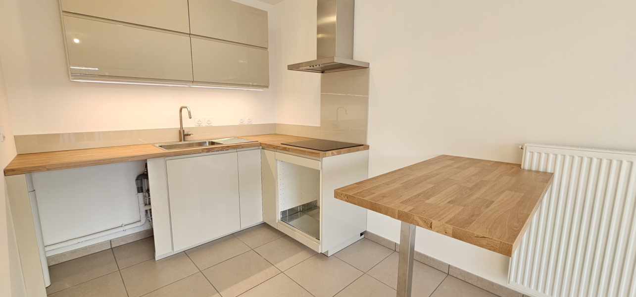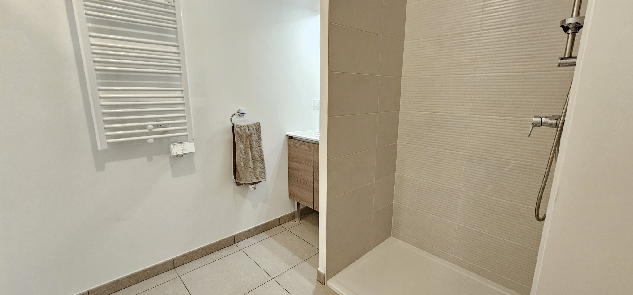 Il se compose d’une entrée avec placard sur dégagement desservant un superbe séjour avec cuisine aménagée et équipée d’une plaque de cuisson et d’une hotte le tout prolongé par une magnifique terrasse exposée sud-ouest, d’une chambre avec placard aménagé et d’une salle d’eau avec W.C. (la paroi de souche est en cours d’installation).