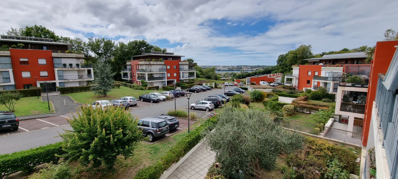 Ce bel appartement meublé de type 2 exposé sud est situé sur les hauteurs de BAYONNE avec une magnifique vue Adour, au 2ème étage d’une belle résidence de standing.