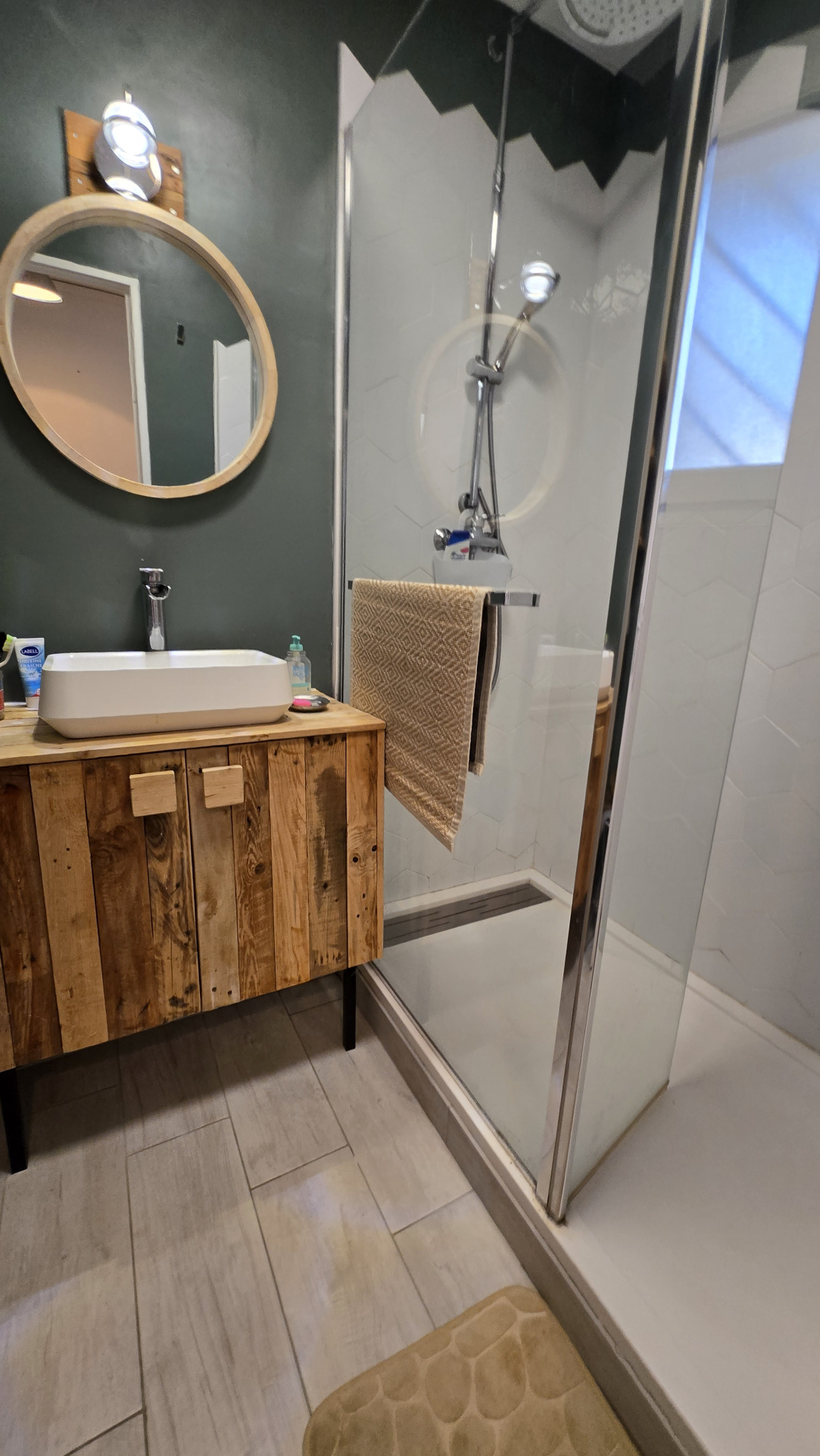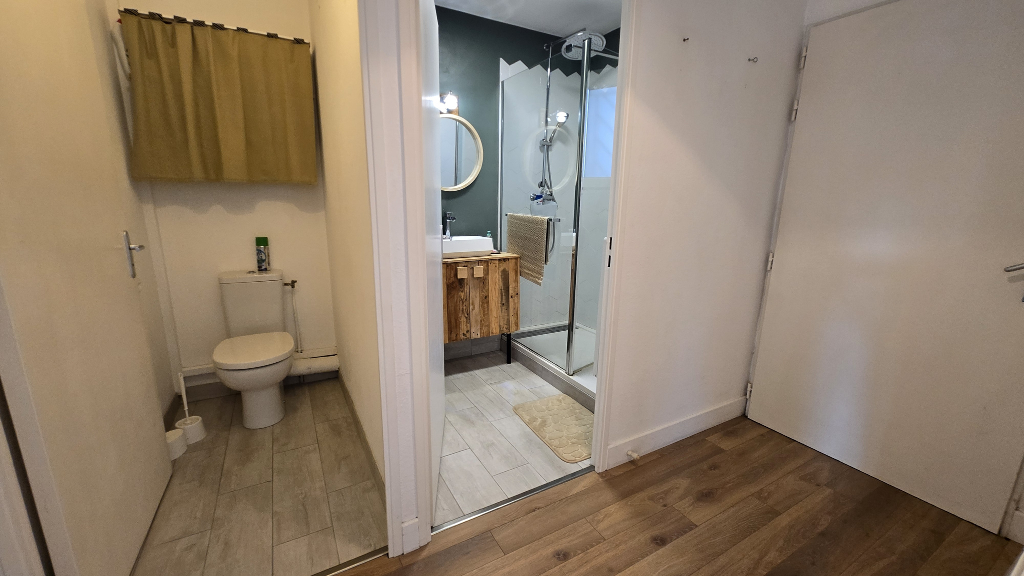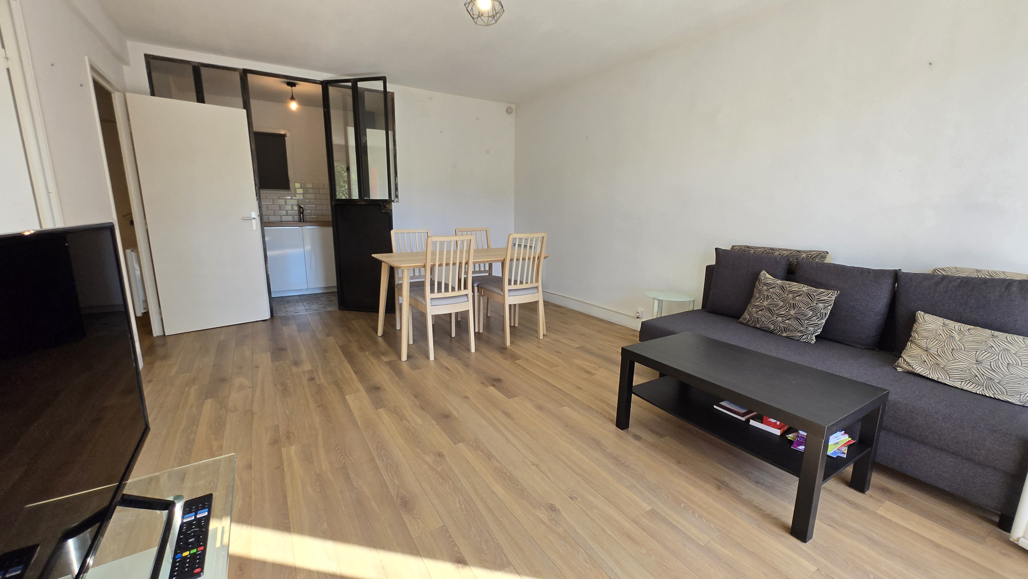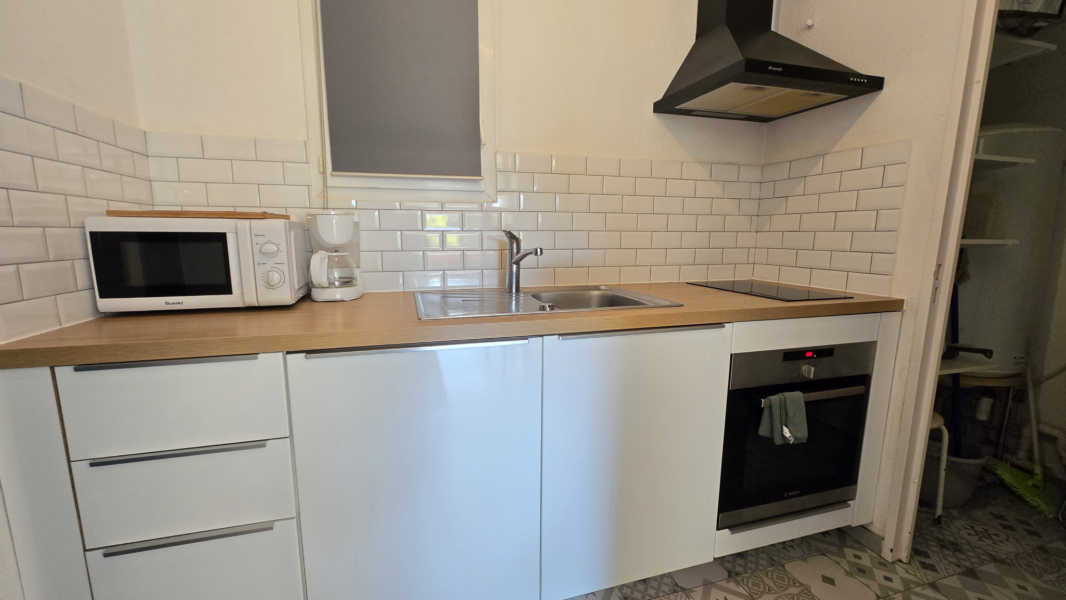 Il se compose d’une entrée sur dégagement avec placard desservant une salle d’eau et un wc séparé et pouvrant sur un magnifique séjour donnant sur une belle terrasse entourée de verdure, une cuisine aménagée et équipée et une chambre avec placard.