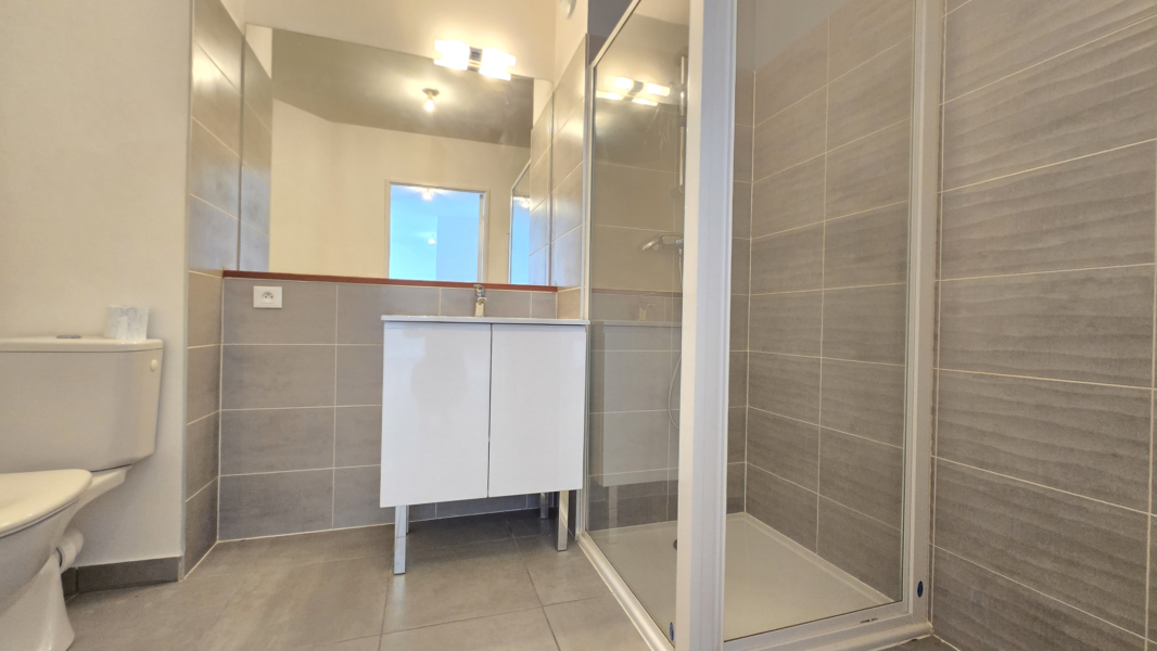 Particulièrement lumineux, il se compose d’une entrée sur dégagement avec placard desservant un séjour avec cuisine aménagéeet une chambre le tout donnant sur une belle terrasse, et une salle de bains avec wc.
