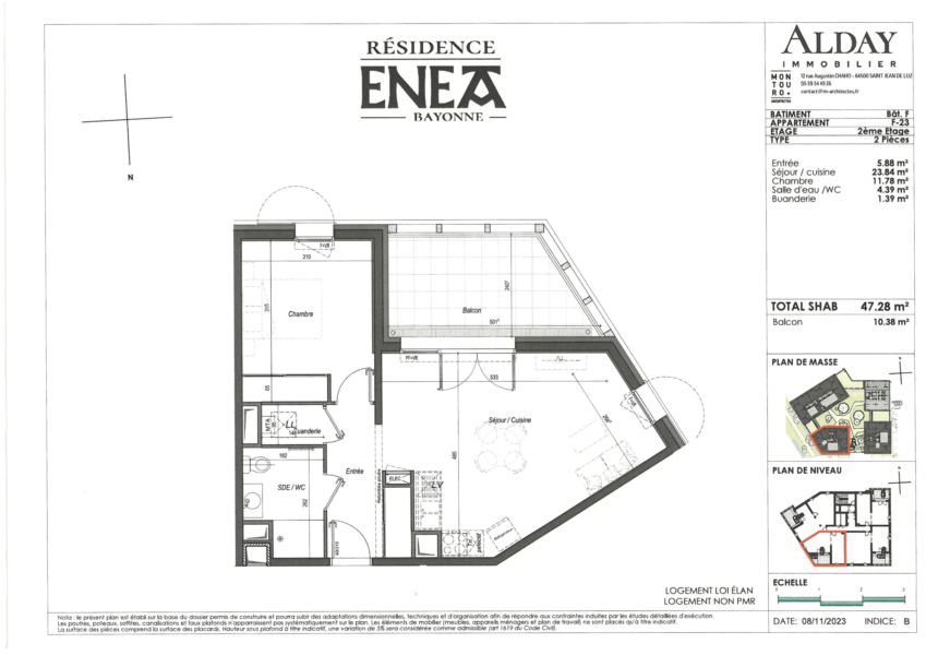 Cet appartement de type 2 à louer vide à l’année est situé au 2ème étage d’une résidence neuve érigée au cœur d’un quartier particulièrement dynamique, à proximité immédiate du centre commercial IKEA AMETZONDO SHOPPING et de la clinique BELHARA ainsi que des transports en commun et des commerces du BAYONNE historique.