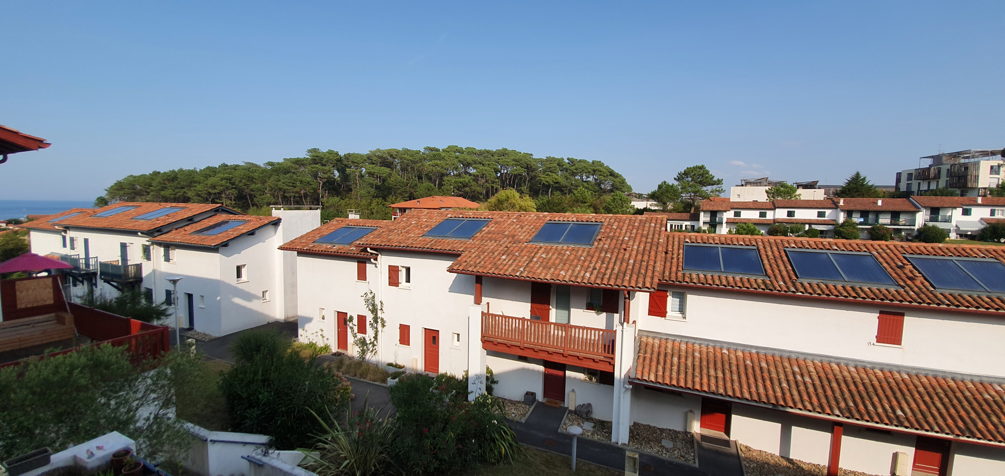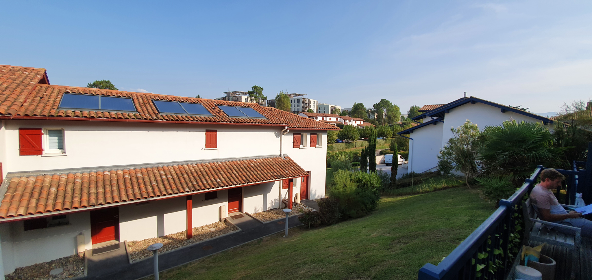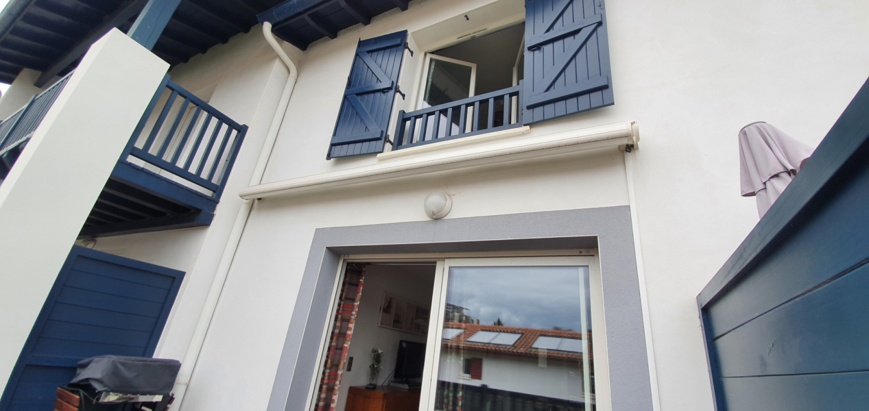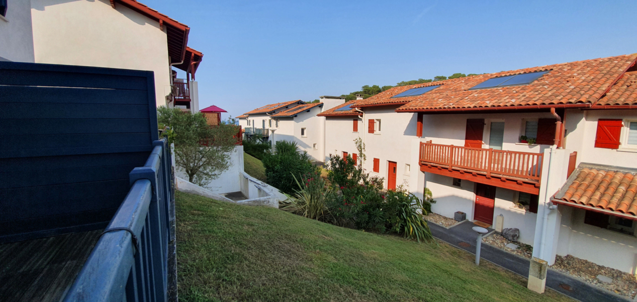 Ce petit appartement cocooning de type 3, en duplex, de style maisonnette mitoyenne, est situé dans une petite résidence calme, à 150 mètres de la plage d’Erromardie.
