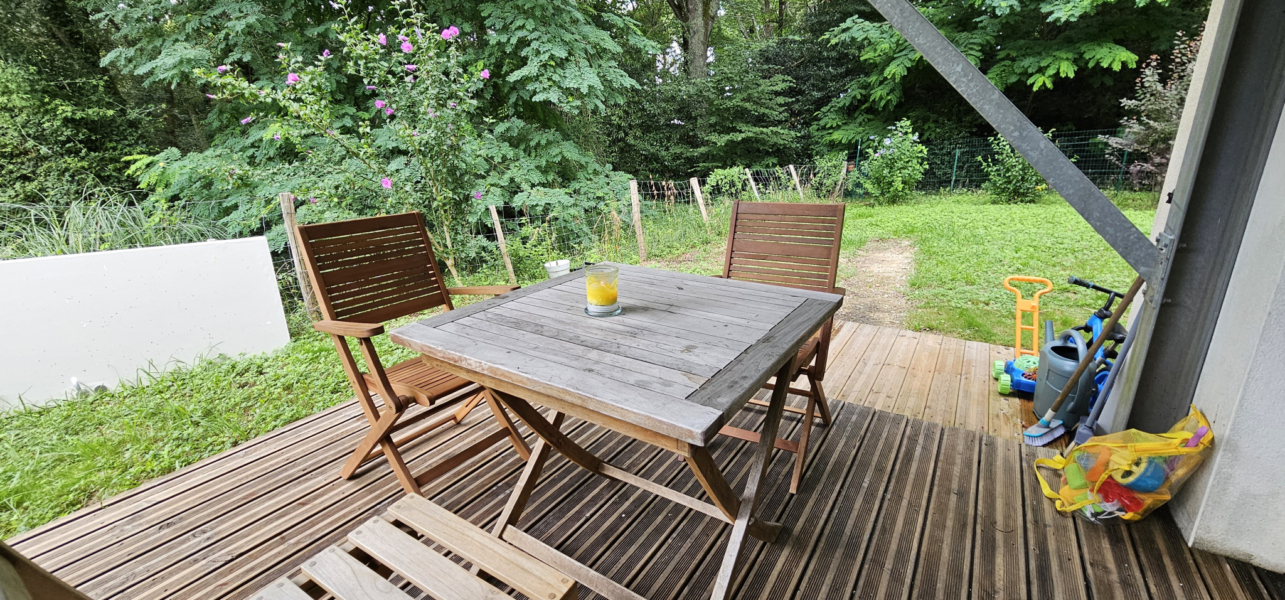 Une visite virtuelle vous permet de découvrir ce bel appartement niché dans la verdure.