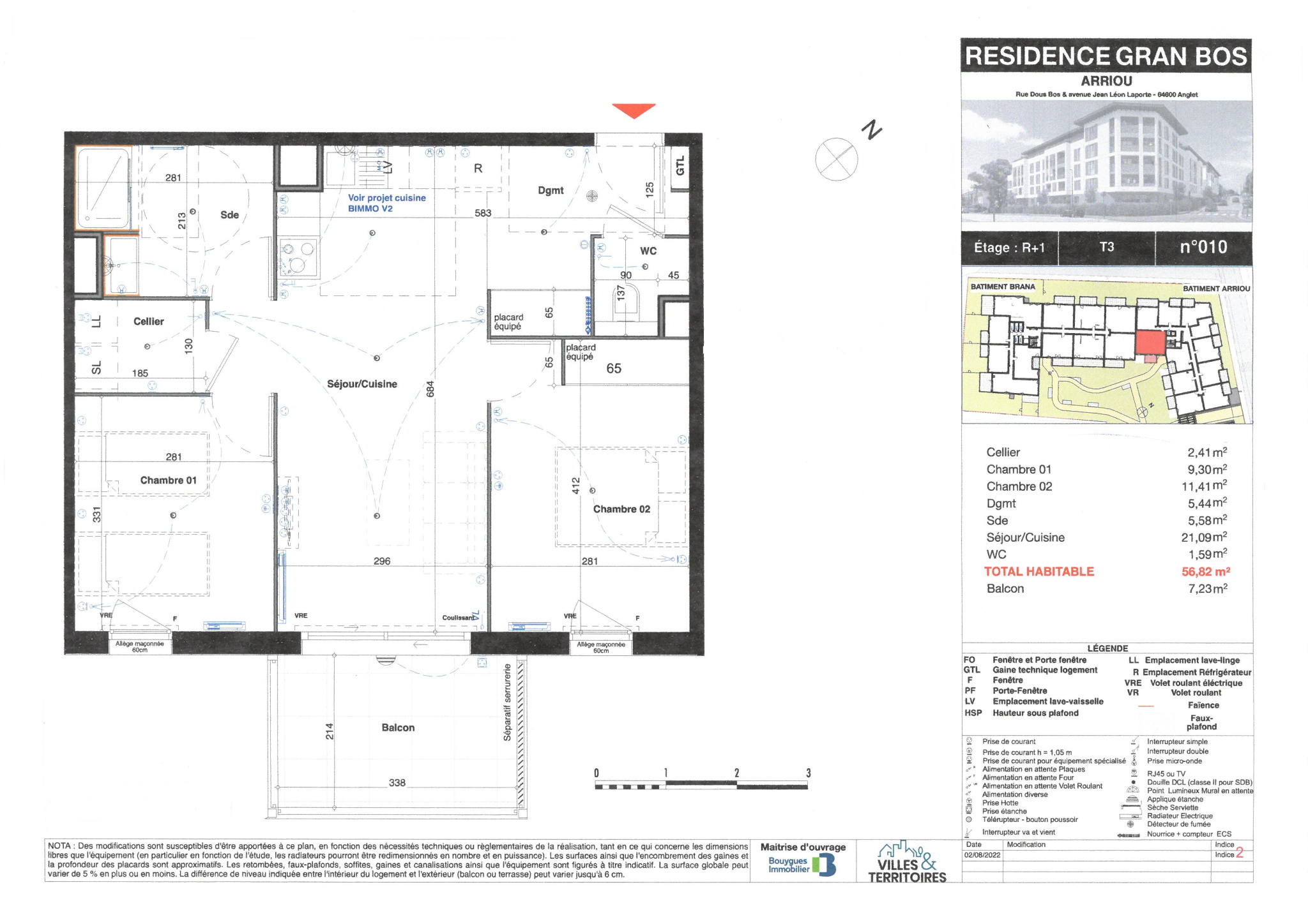 Cet appartement meublé de type 3 est situé au calme d’une superbe réalisation de BOUYGUES IMMOBILIER, à proximité immédiate du centre commercial BAB2 au 1er étage de la résidence, exposé sud.