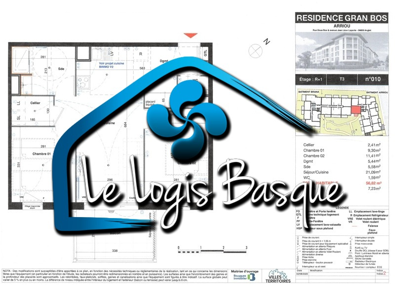 Administrateurs de biens immobiliers, nous proposons à la location un appartement de 56.82 m2 à ANGLET, disponible 1er avril prochain.