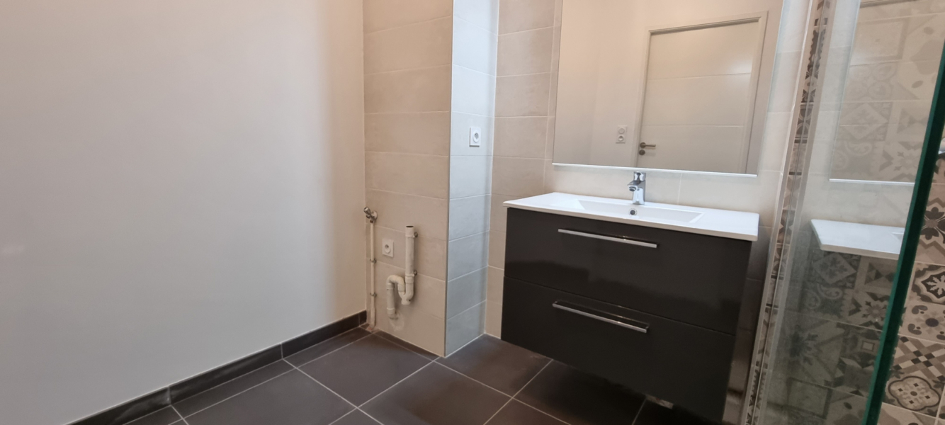 Il se compose d’une entrée sur dégagement avec placard desservant un séjour avec cuisine aménagée avec plaque vitrocéramique, hotte, four, lave-vaisselle, une salle d’eau, un W.C. séparé, deux chambres dont une avec placard et une belle terrasse de 18m2 desservie par le séjour et les deux chambres.