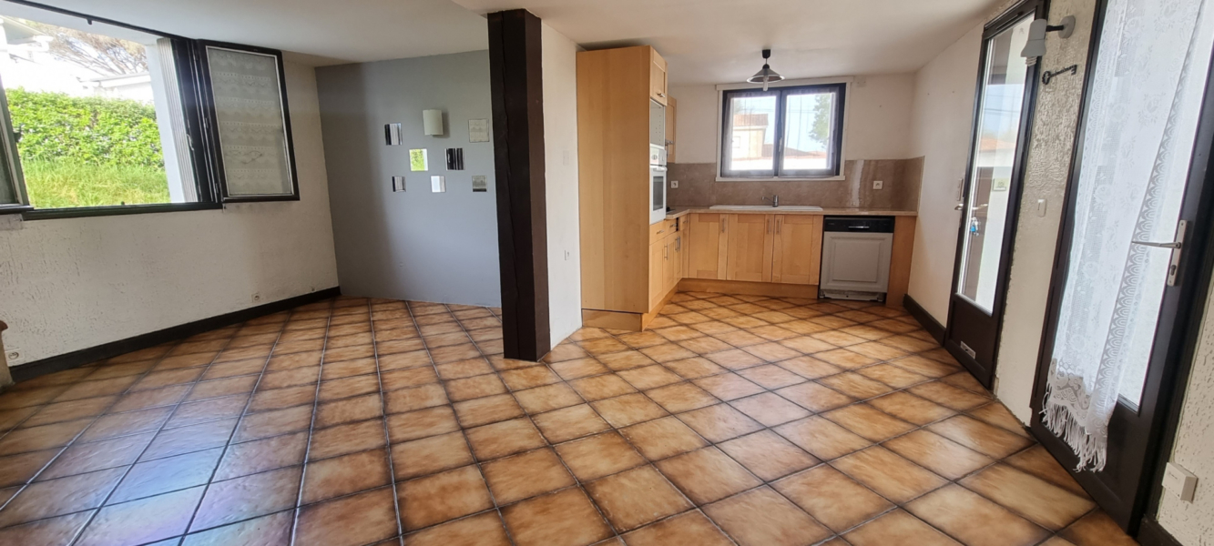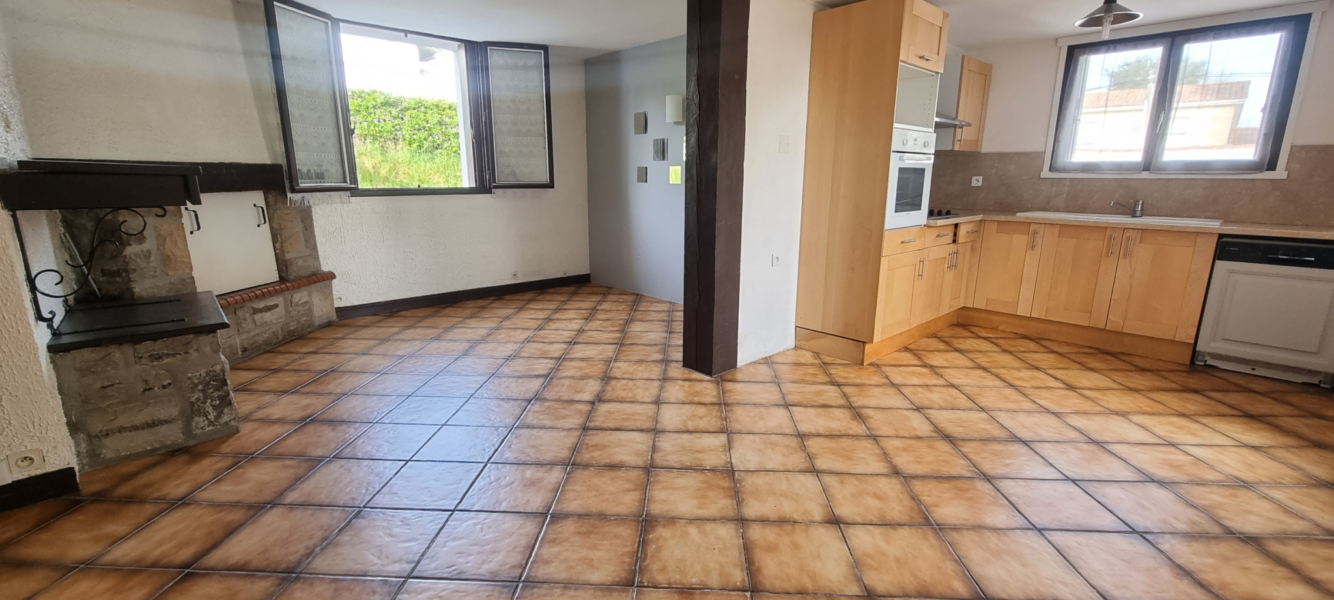 Il se compose d’une entrée, d’un séjour avec cheminée, d’une cuisine américaine aménagée et équipée, une chambre avec placard, un cellier, une pièce semi-aveugle, une salle de bains et un wc.