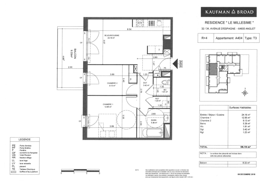 Cet appartement de type 3 est situé au dernier étage d’une belle résidence neuve au coeur d’ANGLET, à proximité des commodités de la ville et des transports en commun, entre ANGLET Saint Jean et l’aéroport.