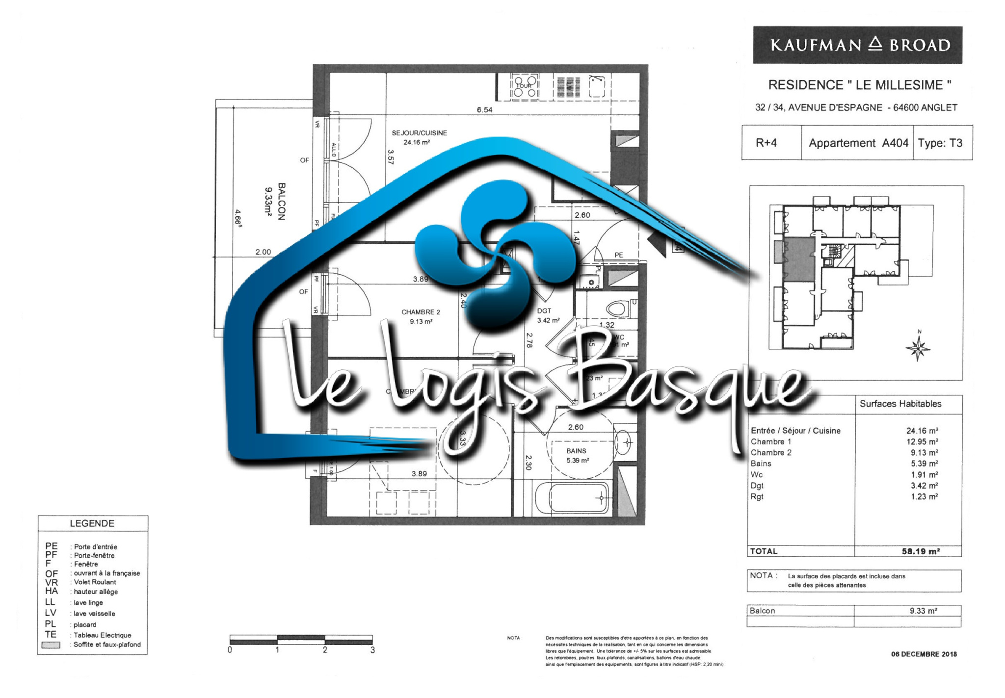 Administrateurs de biens immobiliers, nous proposons à la location un appartement NEUF de 60 m2 environ à ANGLET, disponible le 30 juin.