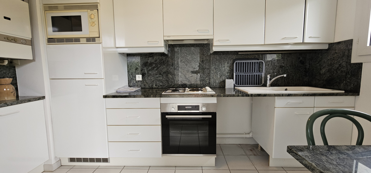 A louer meublé à l’année, il se compose d’une entrée sur dégagement desservant un séjour donnant sur une très belle terrasse qui dessert également la cuisine aménagée et équipée. Le couloir de distribution offrant un grand placard de rangement dessert les deux chambres, la salle de bains et le wc séparé.