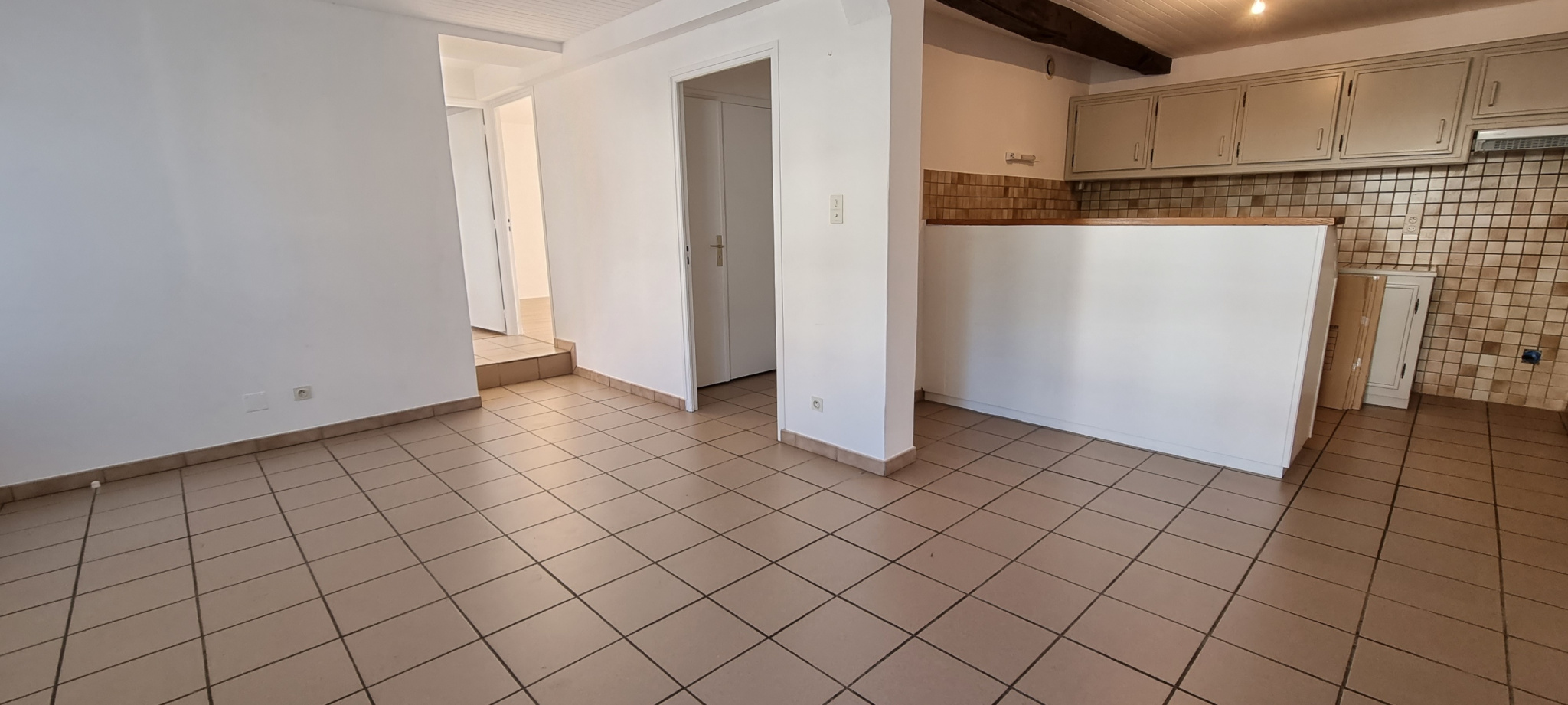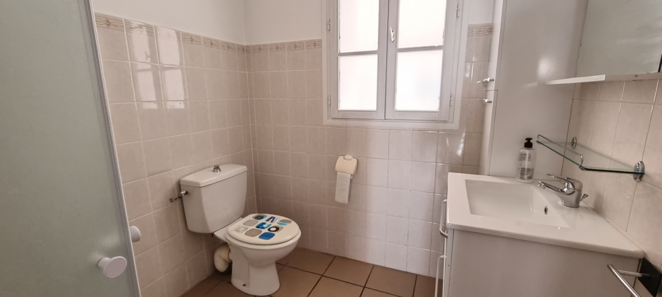 Il se compose d’une entrée sur séjour avec cuisine aménagée, un dégagement avec placard desservant une salle d’eau avec W.C., deux chambres dont une avec placards.