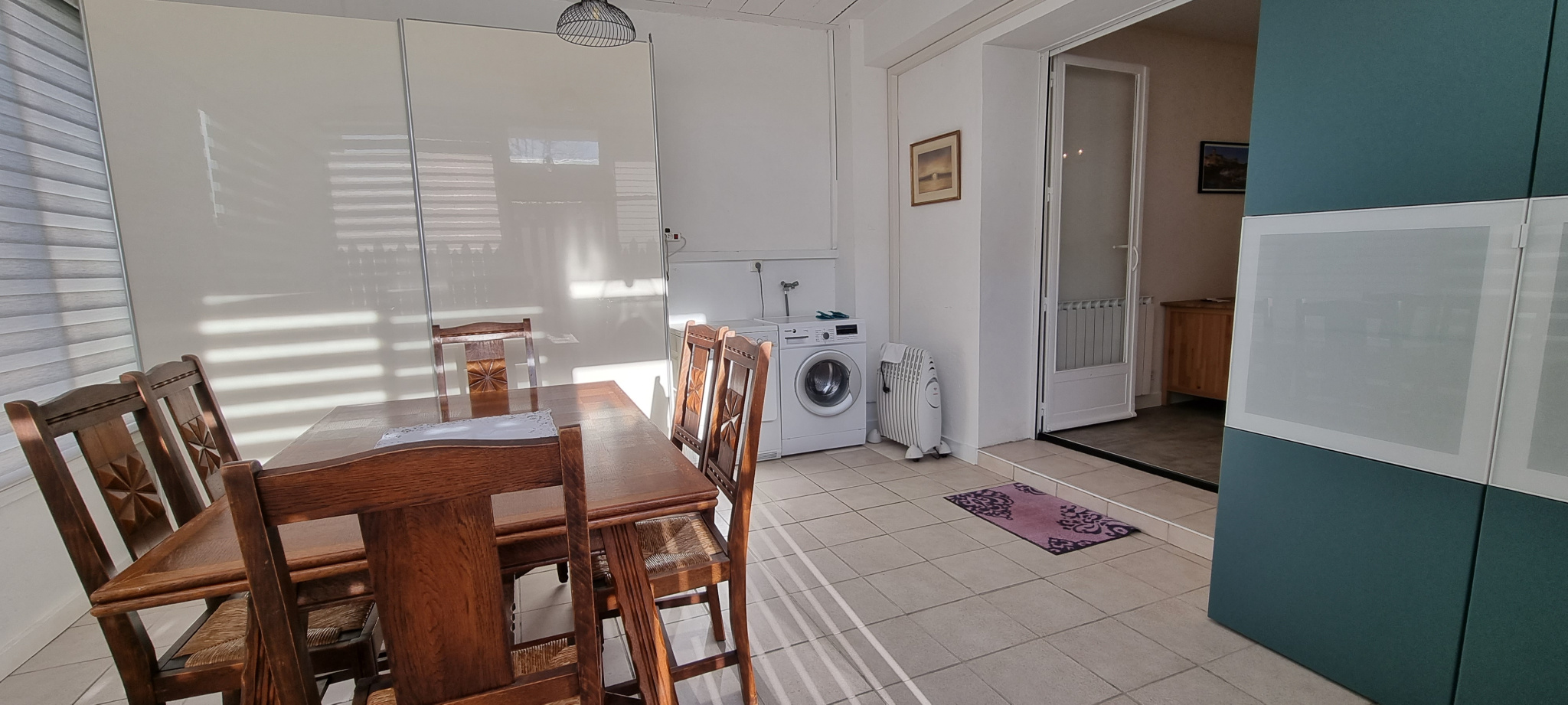 Il se compose d’une entrée sur une magnifique cuisine aménagée et équipée desservant un séjour donnant sur une véranda exposée sud, une salle d’eau, un W.C. séparé et deux belles chambres.