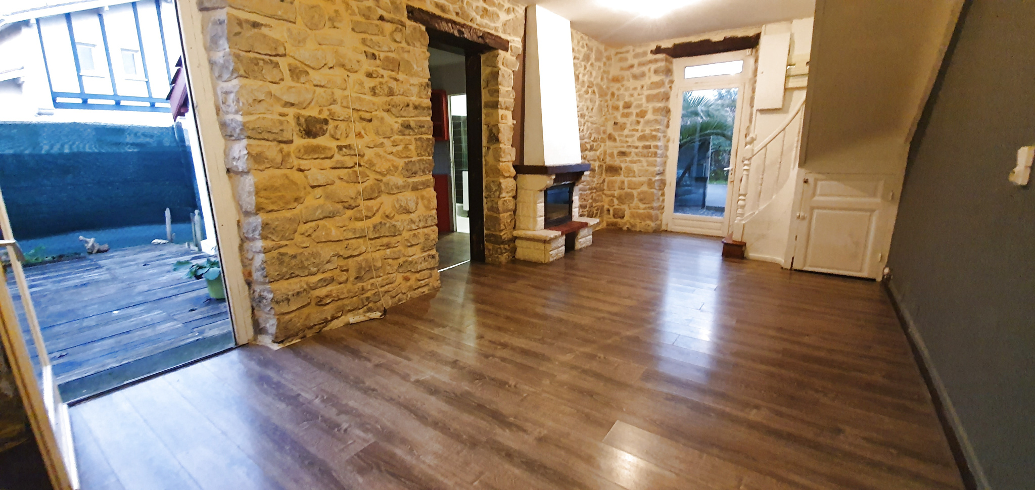Il se compose d’une entrée sur séjour, d’une cuisine aménagée, d’une salle d’eau avec W.C. et de deux chambres à l’étage.