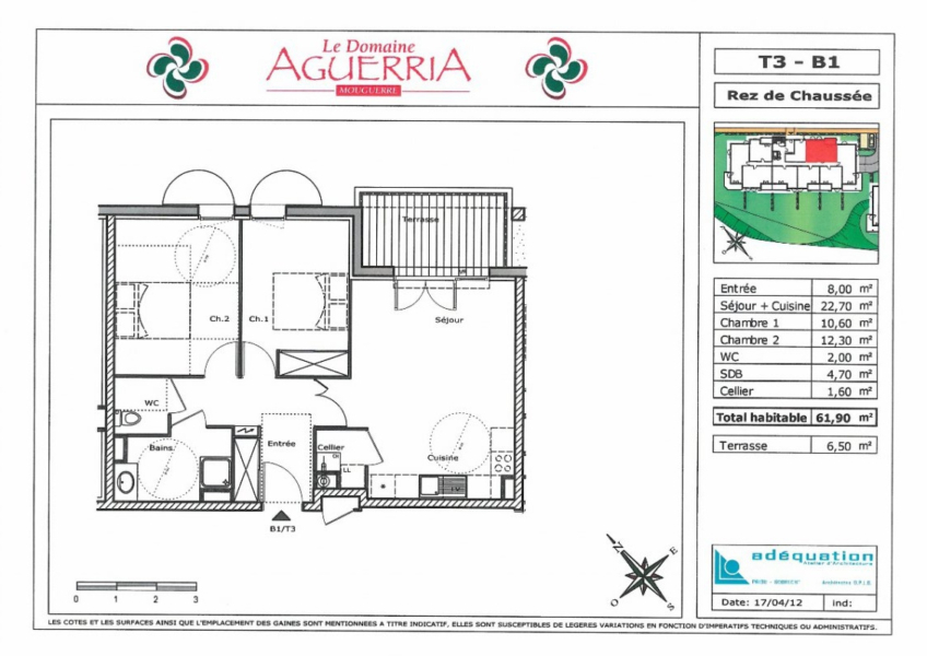 Administrateurs de biens immobiliers, nous proposons à la location un appartement de 62 m2 environ à MOUGUERRE, disponible le 26 décembre.
