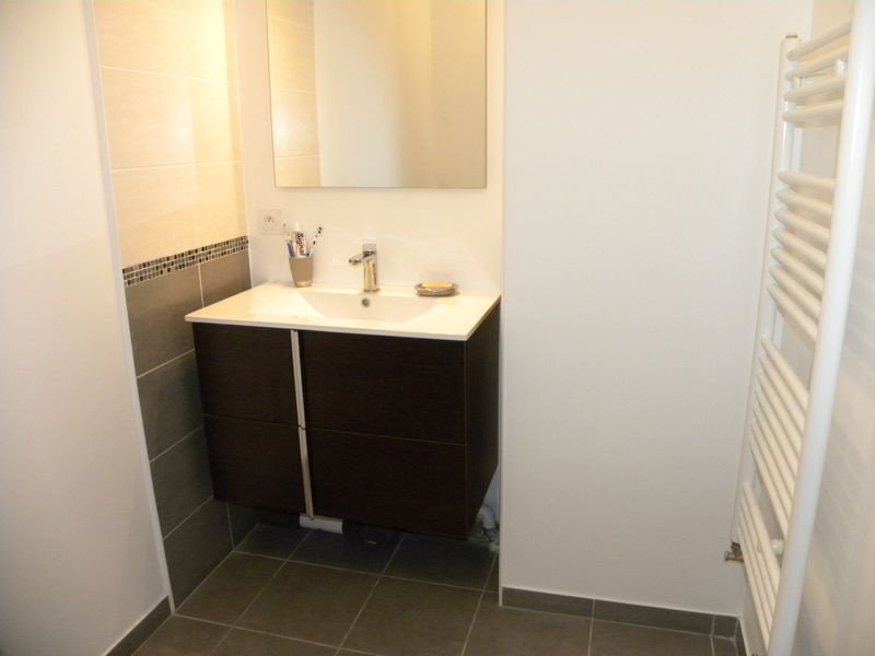Il se compose d’une entrée sur dégagement desservant un séjour avec cuisine aménagée et équipée (four, plaque vitrocéramique, hotte, lave-vaisselle), un cellier, une salle de bains, un W.C., deux chambres dont une avec placard, une belle terrasse orientée est.