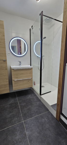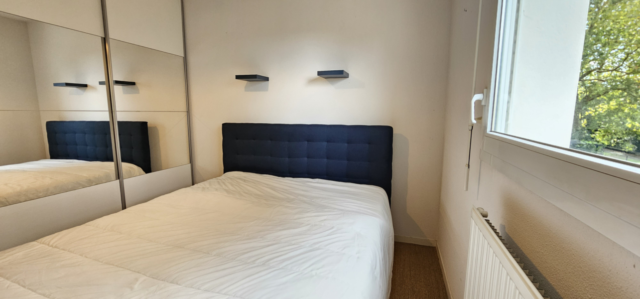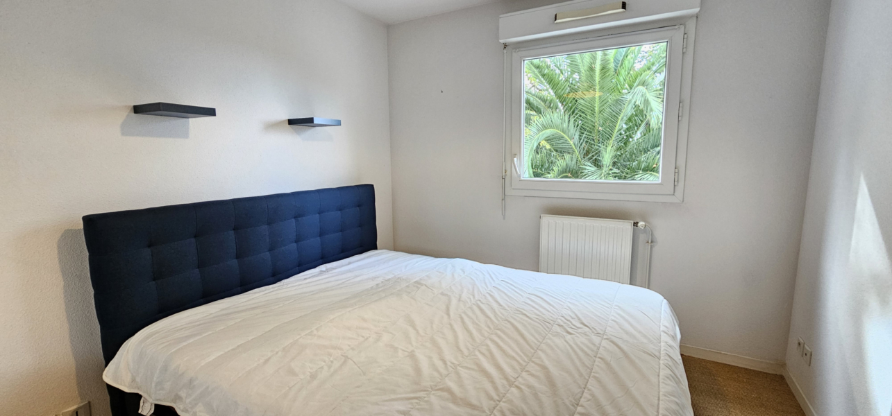 Exposé sud, il se compose d’une entrée sur dégagement desservant un beau séjour avec cuisine aménagée et équipée donnant sur une terrasse ouvrant sur un parc arboré, deux chambres, une salle de bains, et un W.C. séparé.