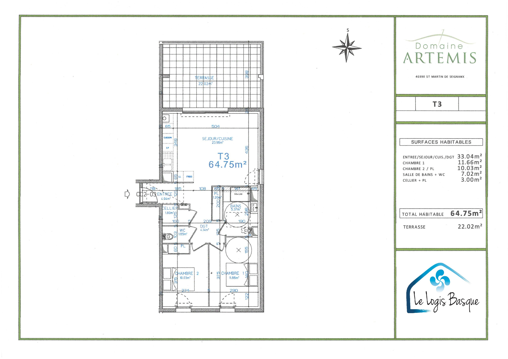 Administrateurs de biens immobiliers, nous proposons à la location un T3 récent d’environ 65 m2 à SAINT MARTIN DE SEIGNANX, disponible le 6 décembre.