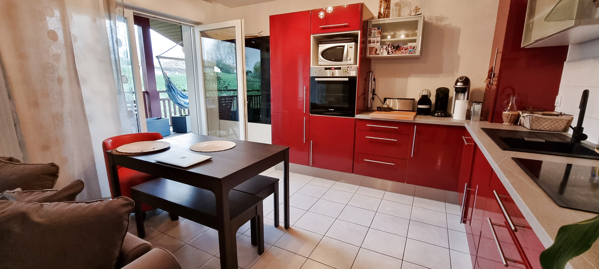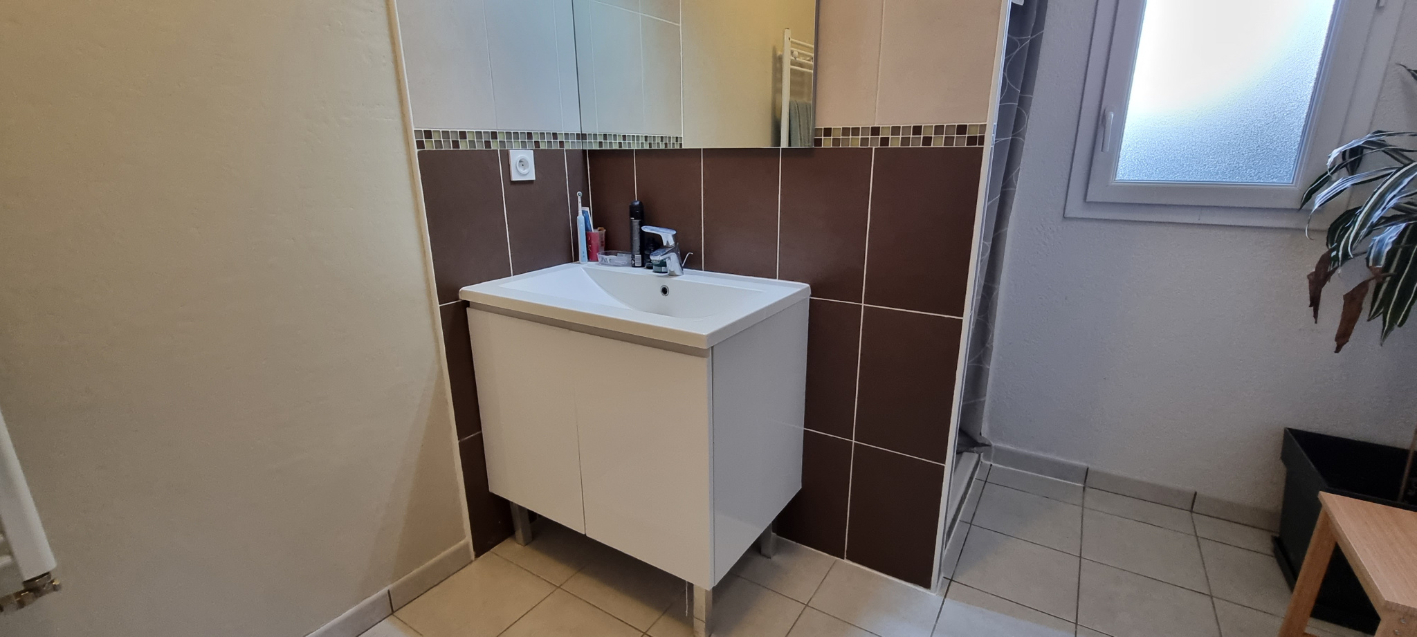 Il se compose d’une entrée sur séjour avec belle cuisine aménagée et équipée desservant une superbe terrasse exposée sud ouest sans vis à vis offrant une belle vue dégagée, une salle d’eau, un W.C. séparé, deux chambres avec placards aménagés.