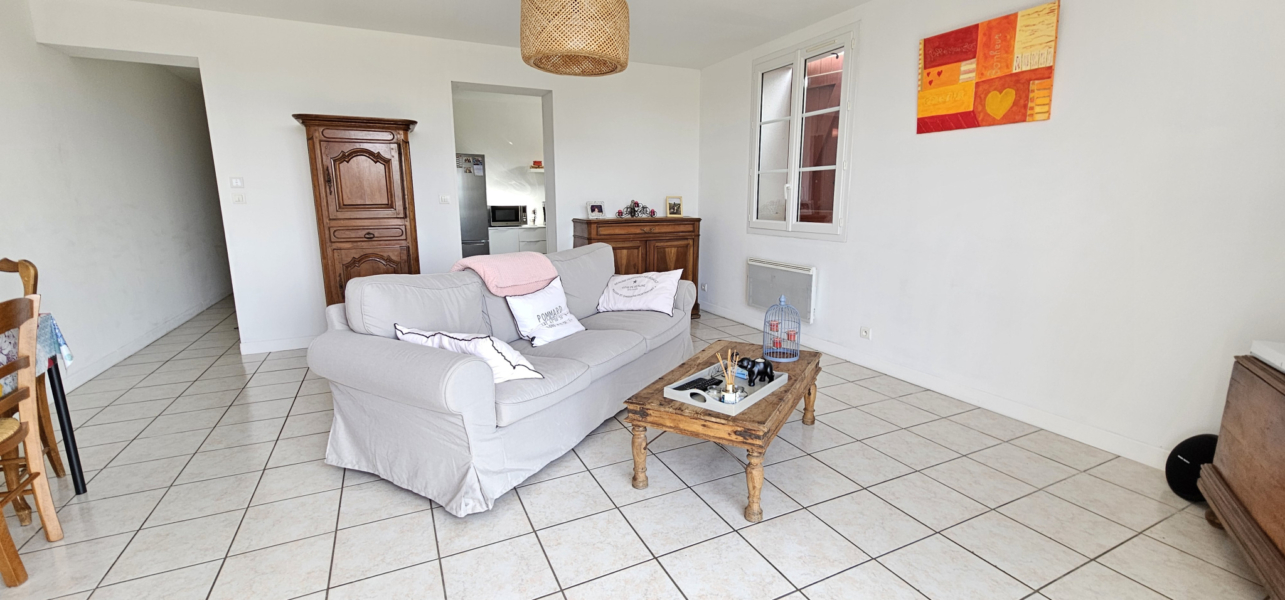 Ce bel appartement de type 3 meublé est situé au calme d’une petite impasse à proximité immédiate des commerces du bourg à pied, au 1er étage d’un bâtiment divisé en 5 appartements.