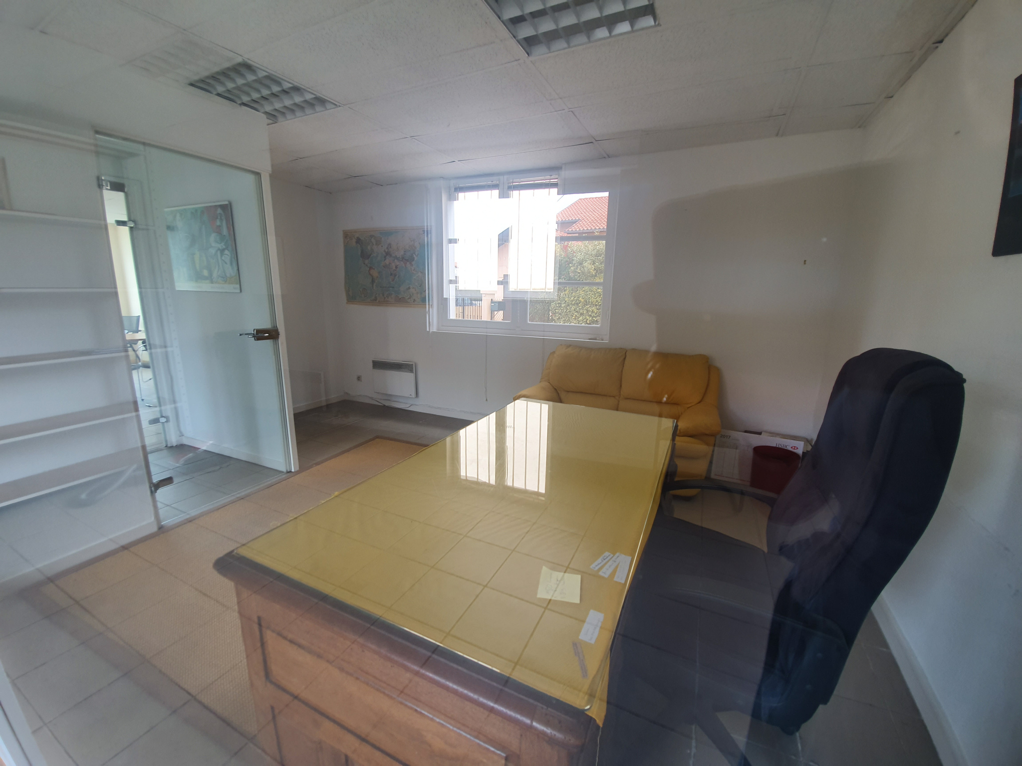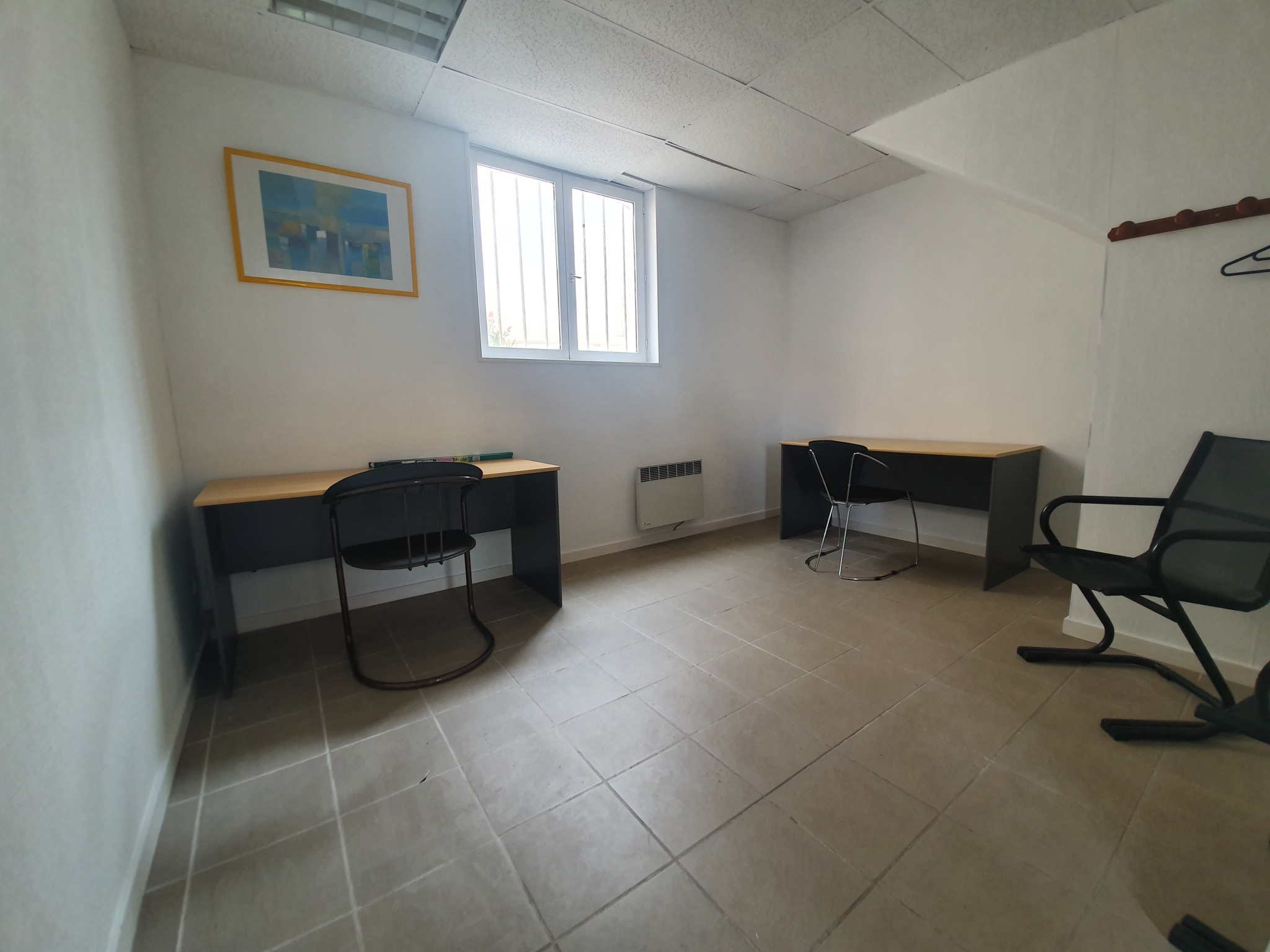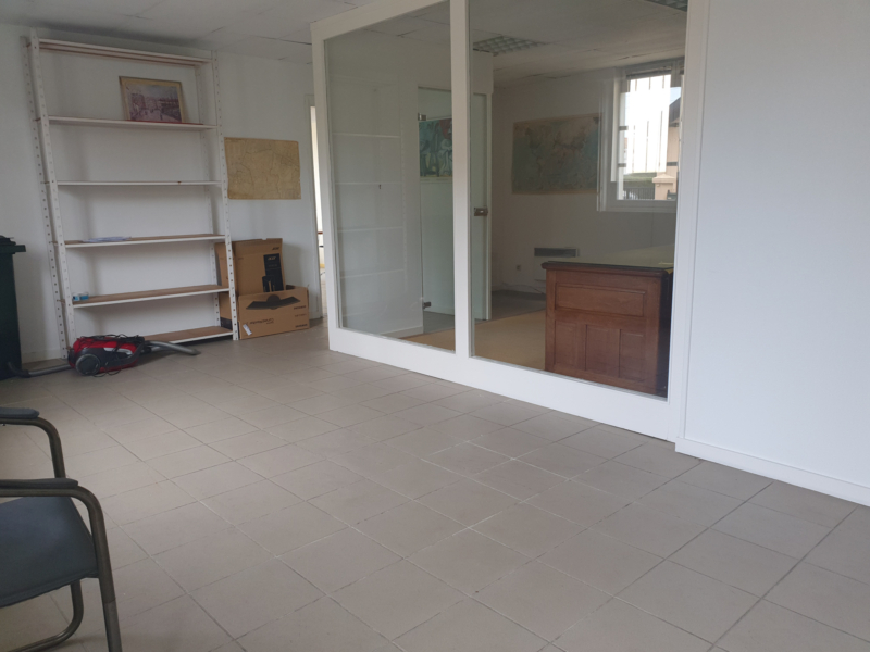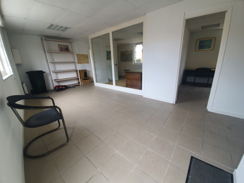 Il se compose d’une entrée sur une grande pièce d’accueil desservant deux beaux bureaux et un W.C. avec lave-mains.