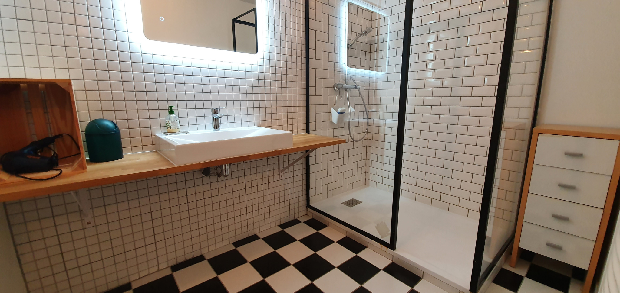 Il se compose au 1er niveau, d’une entrée sur magnifique séjour avec cuisine américaine aménagée et équipée, donnant sur une belle terrasse, et un wc.