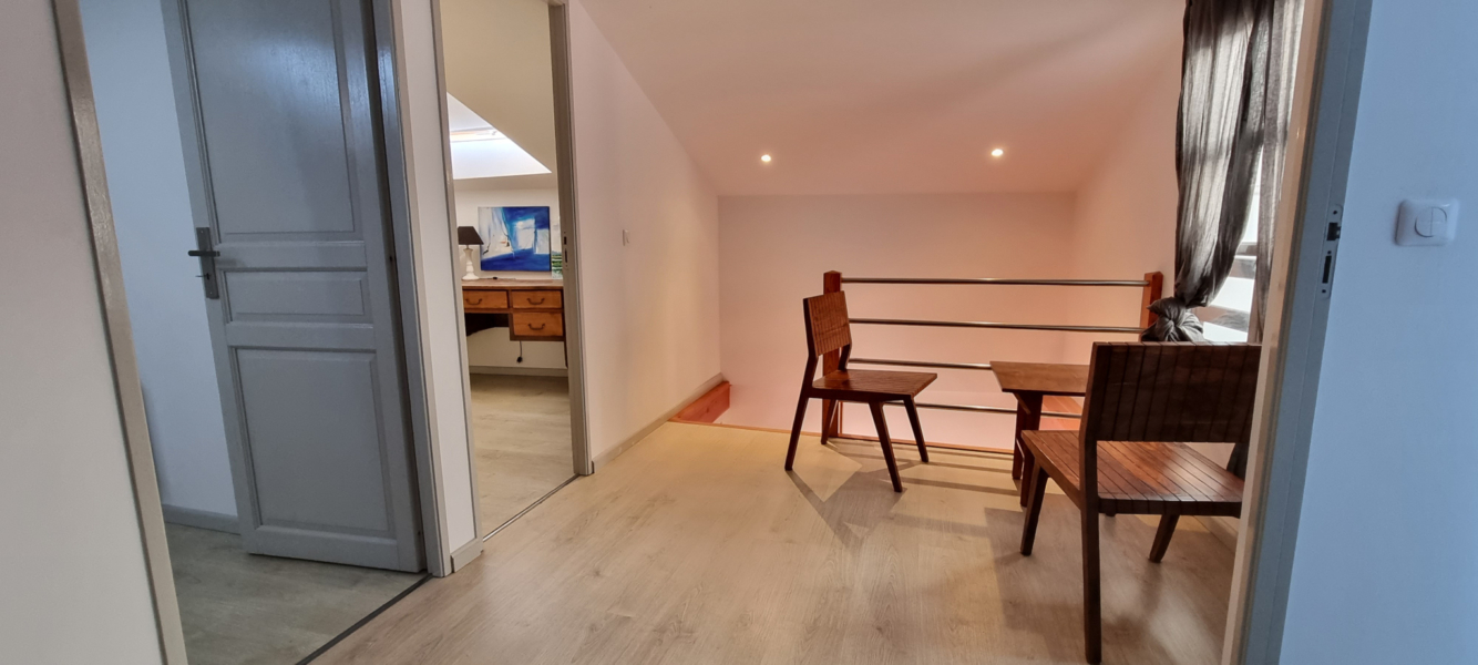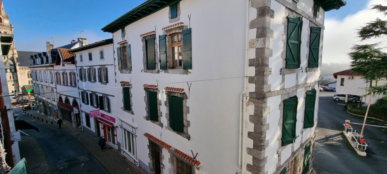 Cet appartement en duplex est situé au 2ème étage d’un immeuble de ville au centre d’Hasparren, à deux pas de l’église et à proximité immédiates des commerces à pied.