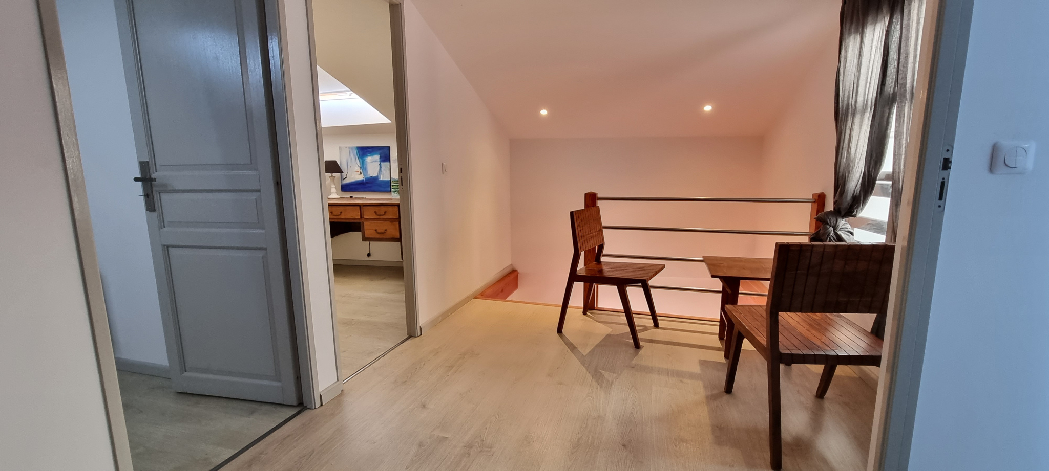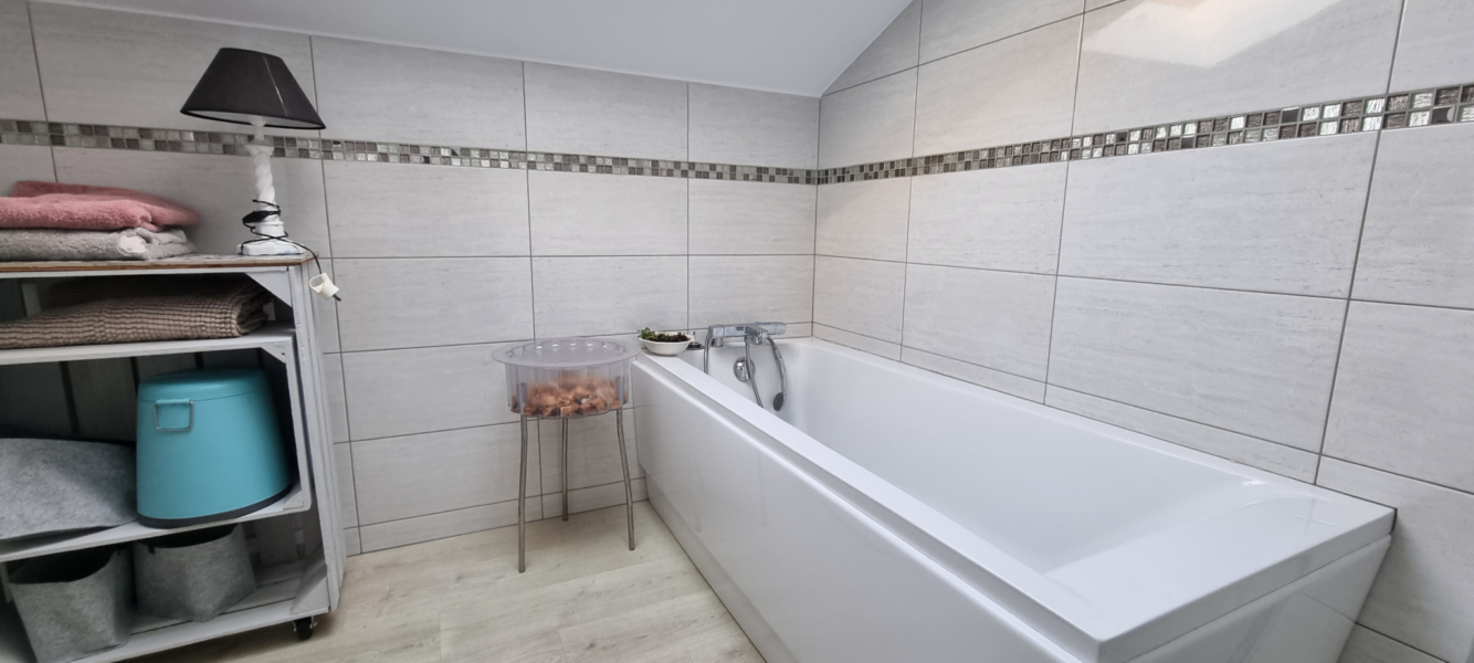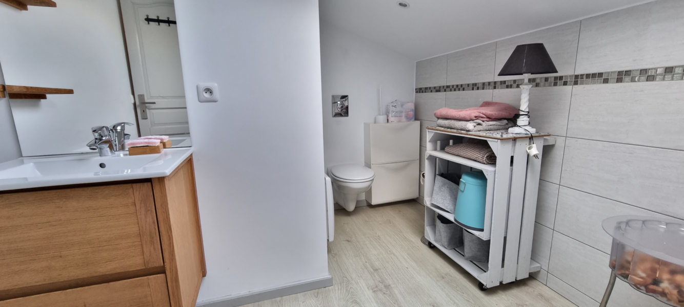 A l’étage un palier dessert deux chambres et une salle de bains avec W.C.