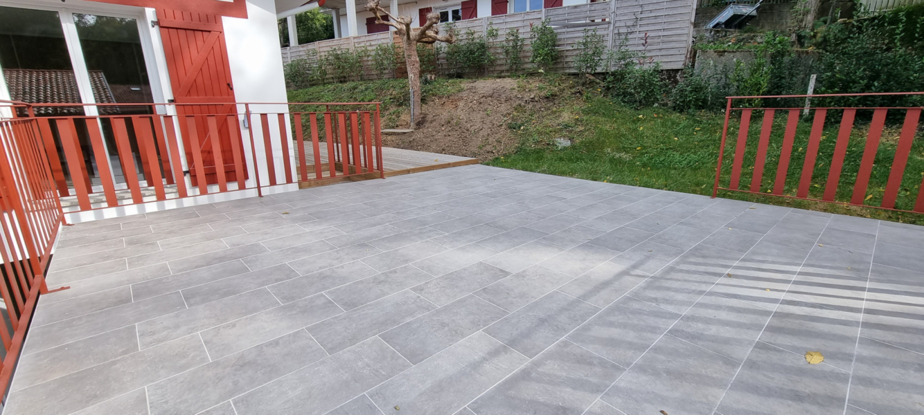 Sous la terrasse, deux stationnements. Les stationnements sont également possibles à l’extérieur, l’accès à la maison se faisant par un portail électrique.