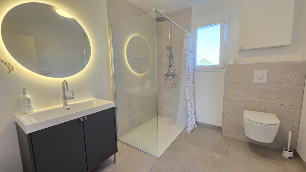 A noter que la villa bénficie d’une pompe à chaleur réversible permettant de chauffer l’hiver et rafraichir l’été et offrant de surcroit, une très faible consommation énergétique.