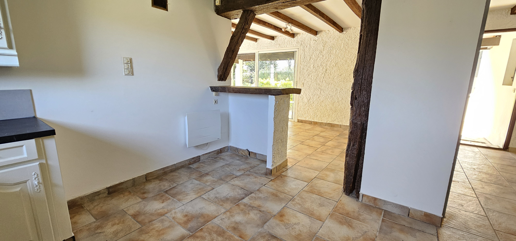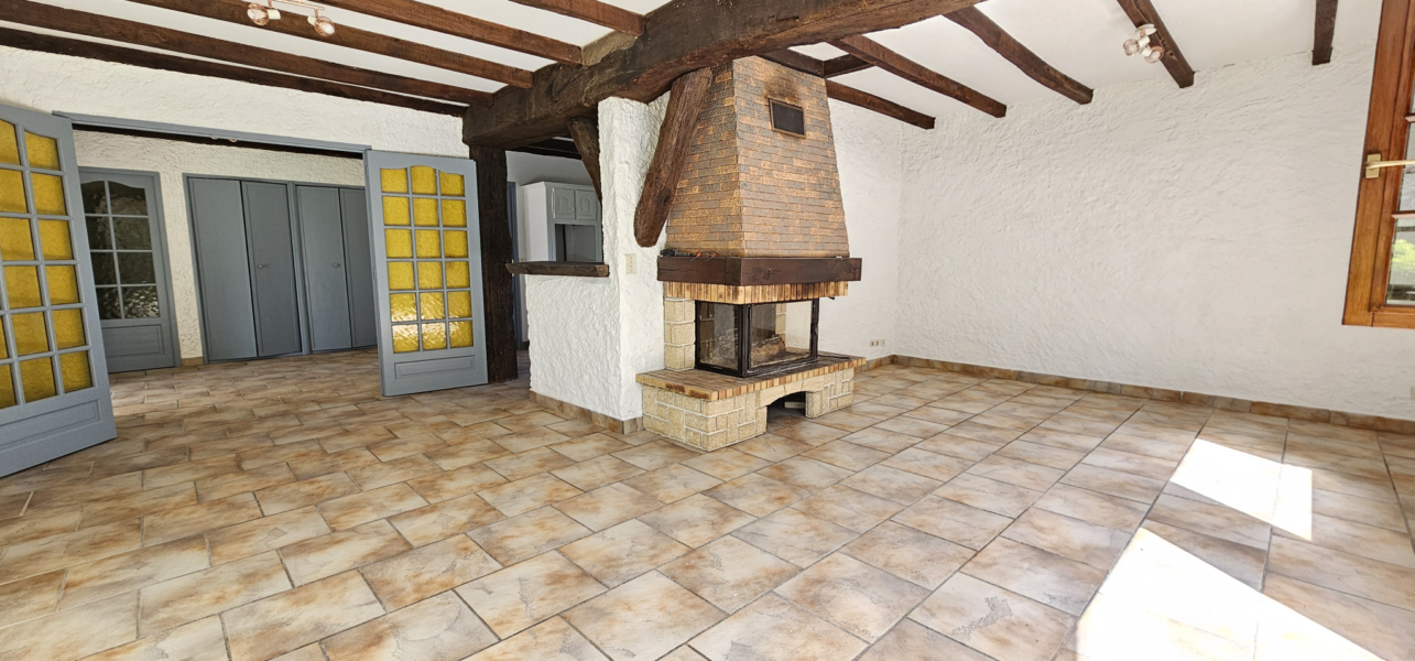 Elle se compose d’une entrée sur dégagement spacieux desservant un grand séjour avec cheminée ouvrant sur une belle terrasse sud, une cuisine aménagée et un cellier.