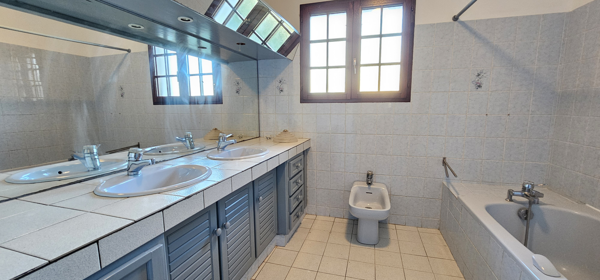 Le coin nuit se compose de trois chambres avec placards dont une avec suite parentale (douche et vasque), d’une salle de bains avec doubles vasques et d’un W.C. séparé.