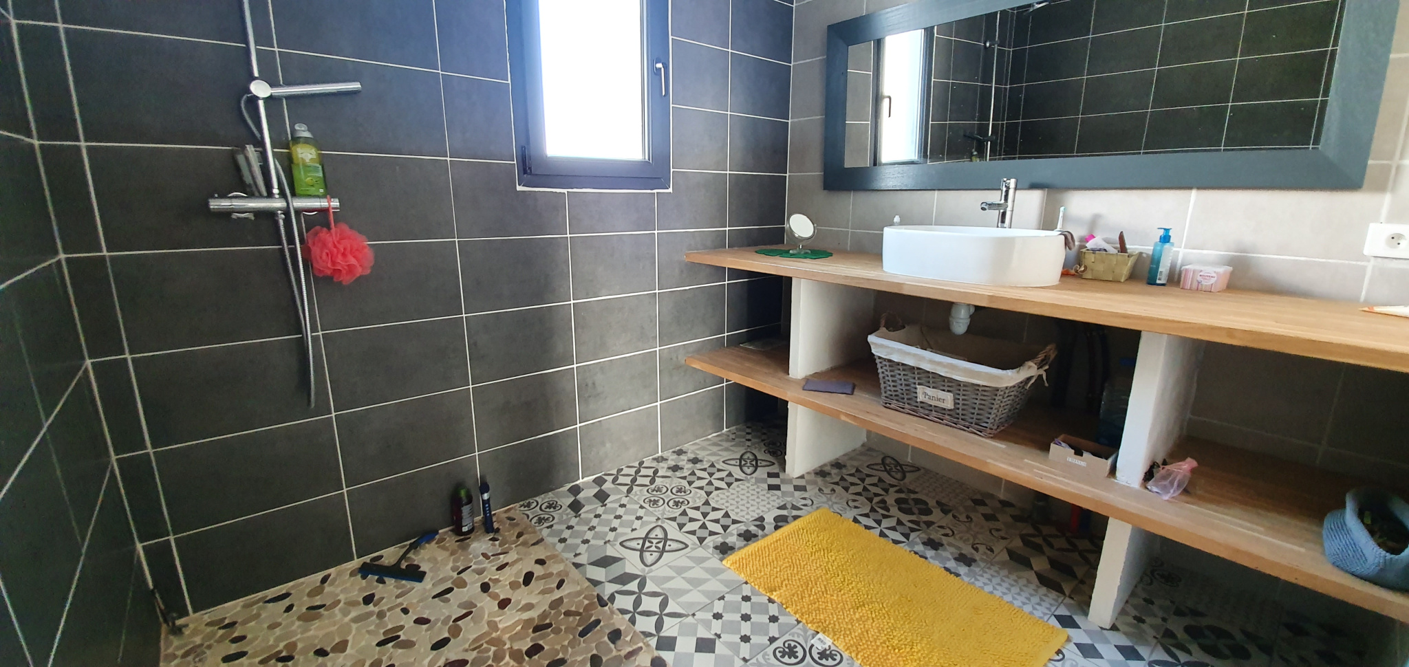 Le chauffage se fait principalement via un poêle à granulés situé dans le séjour avec en complément des chauffages électriques dans les chambres, les menuiseries sont en double vitrage et l’eau chaude se fait via un cumulus thermodynamique. La consommation d’énergie est donc très faible.