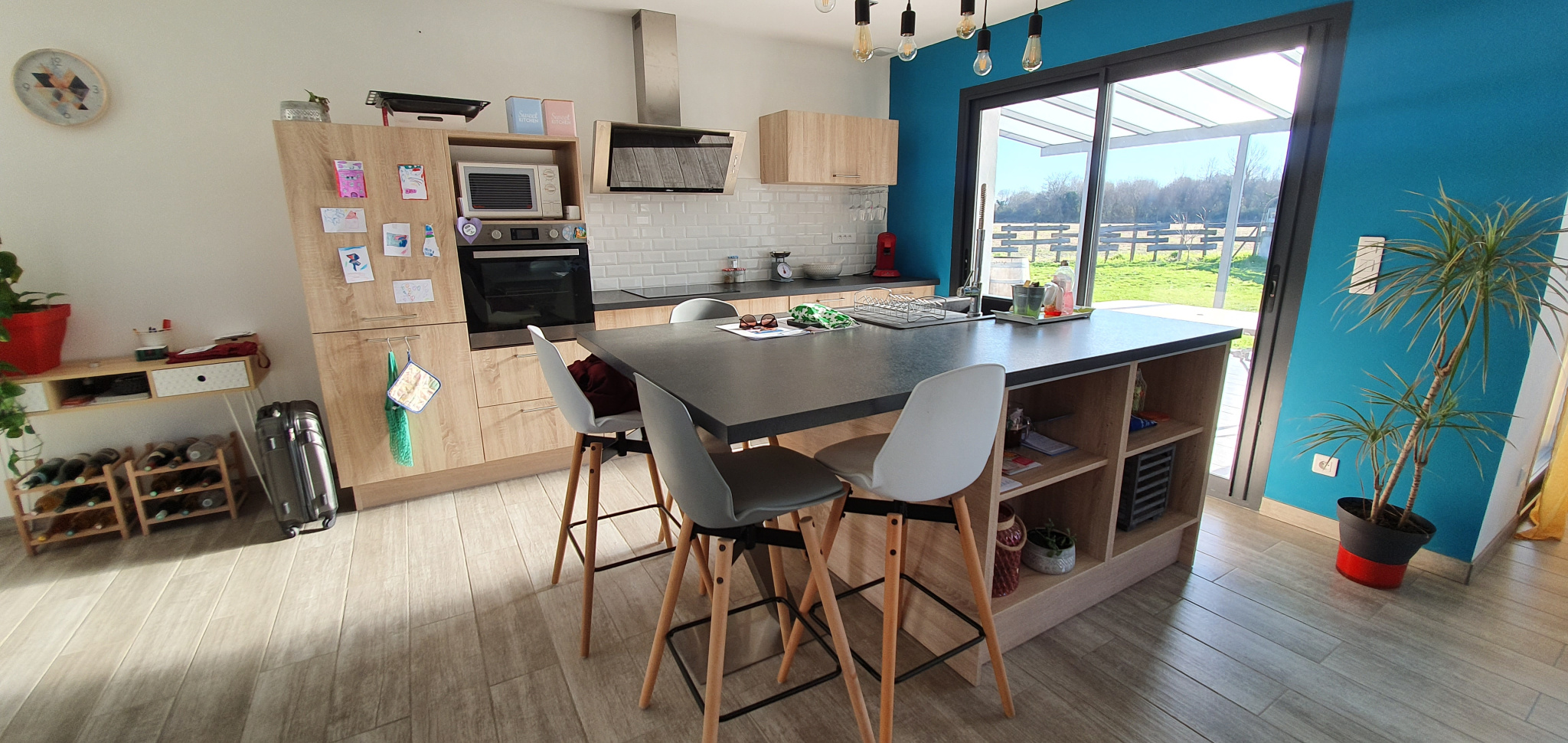 Elle se compose d’une entrée sur pièce principale avec un joli poêle à granulés et une cuisine américaine aménagée et équipée (four, lave-vaisselle, plaque induction, hotte, réfrigérateur), trois chambres dont une suite parentale avec dressing salle d’eau et W.C., une deuxième salle d’eau et un cellier.