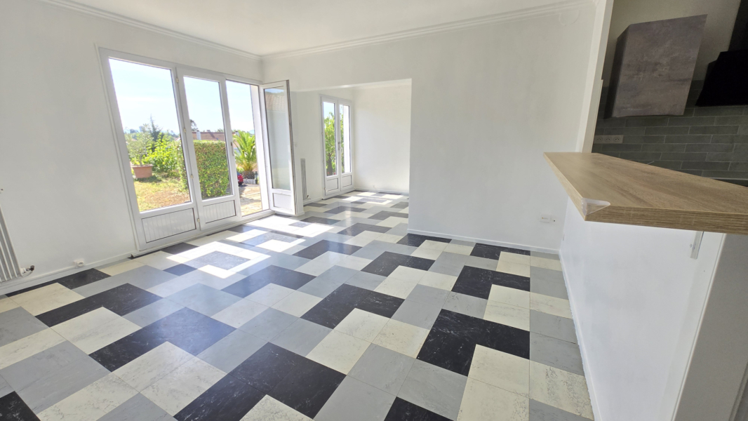 A louer vide, elle se compose d’une entrée sur une belle pièce avec cheminée desservant cellier puis un grand séjour avec cuisine américaine aménagée donnant sur la terrasse et le jardin. Le couloir dessert ensuite les pièces de nuit composées de 3 chambres, d’une salle d’eau et d’un wc séparé.