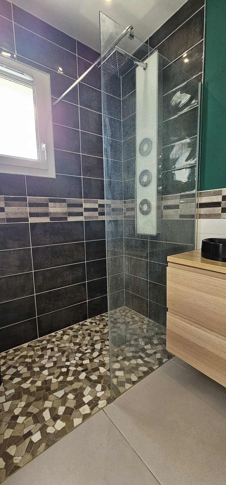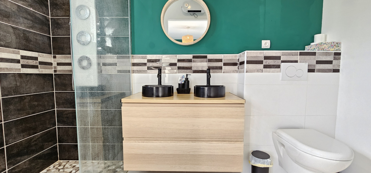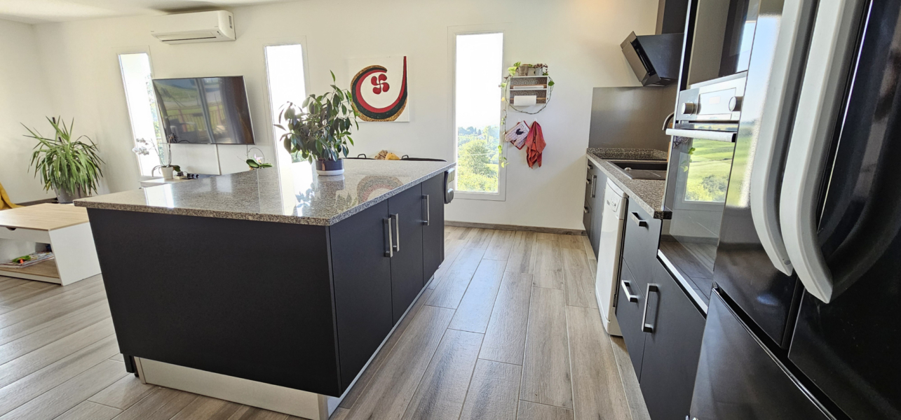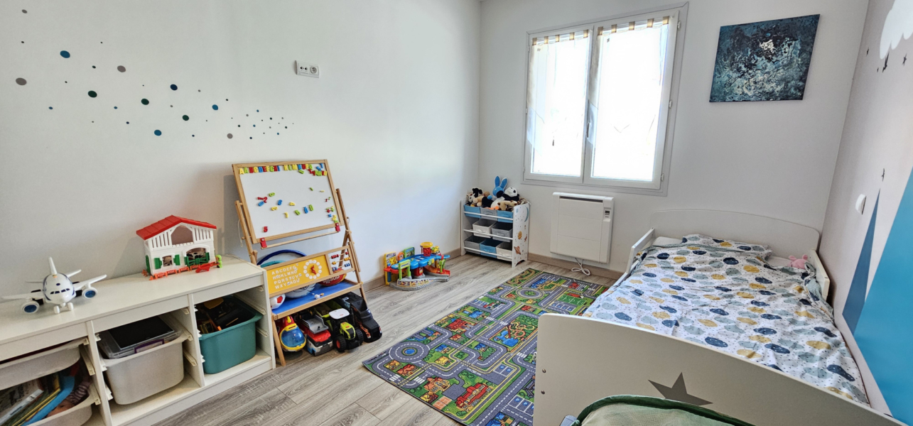 Une climatisation réversible et un cumulus thermodynamique viennent compléter les prestations de cette belle maison et les menuiseries sont bien sûr en double vitrage.