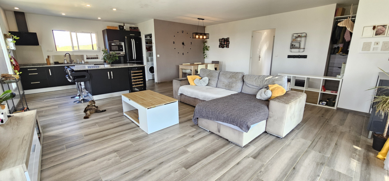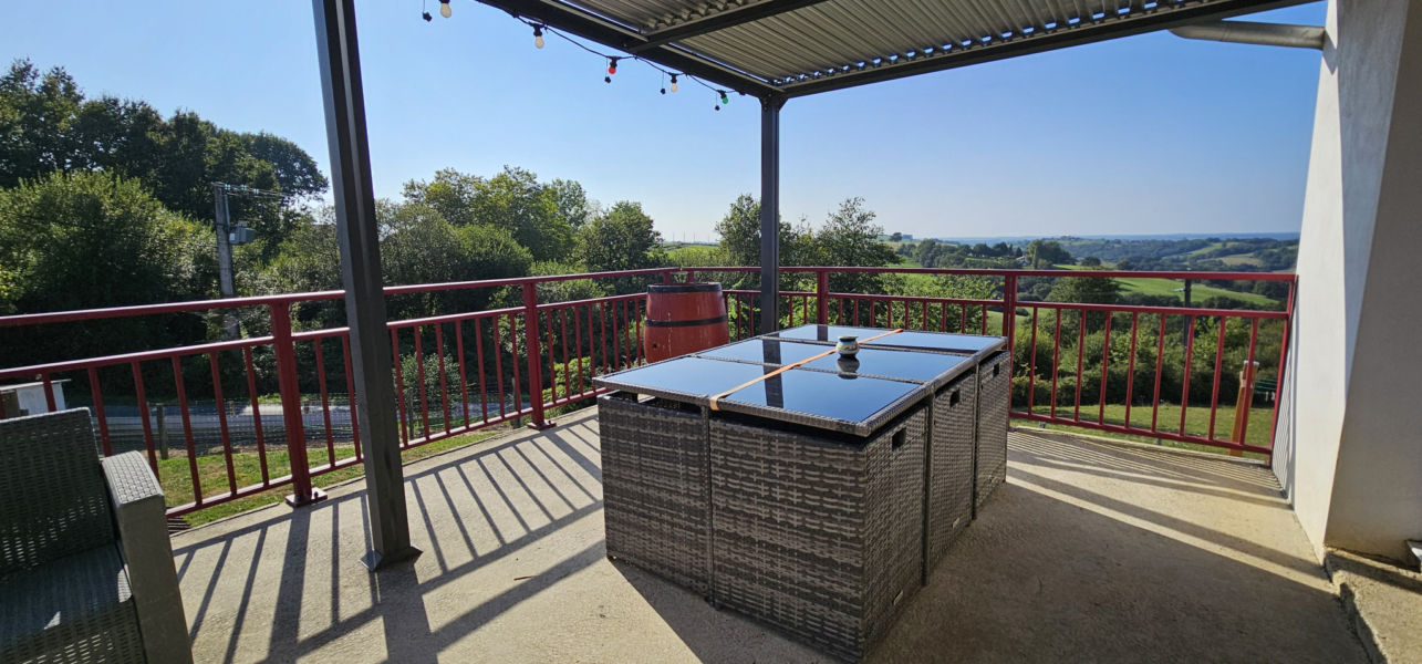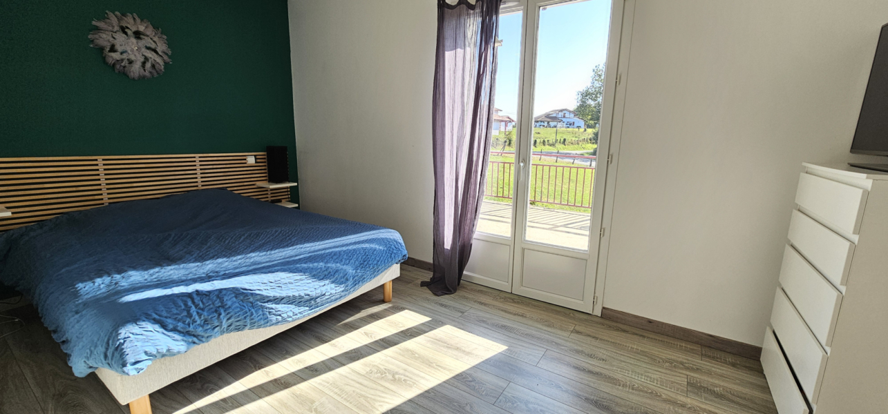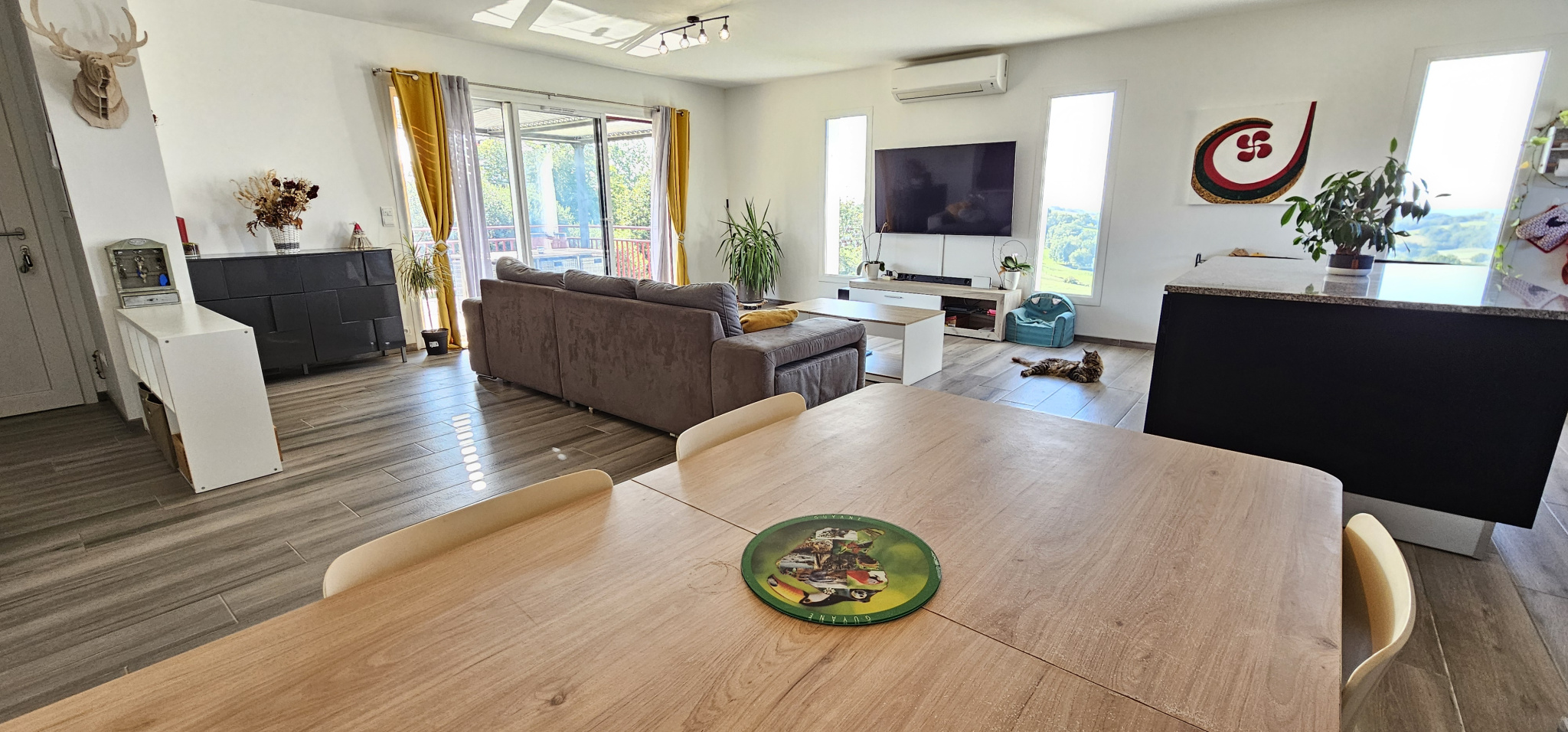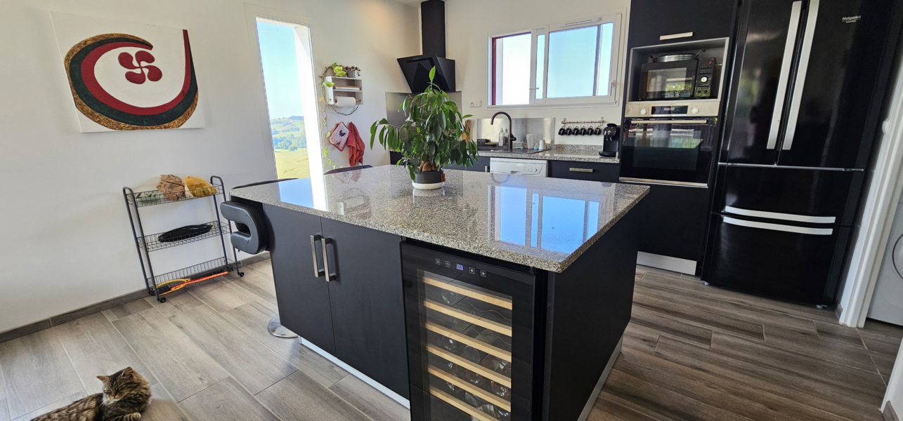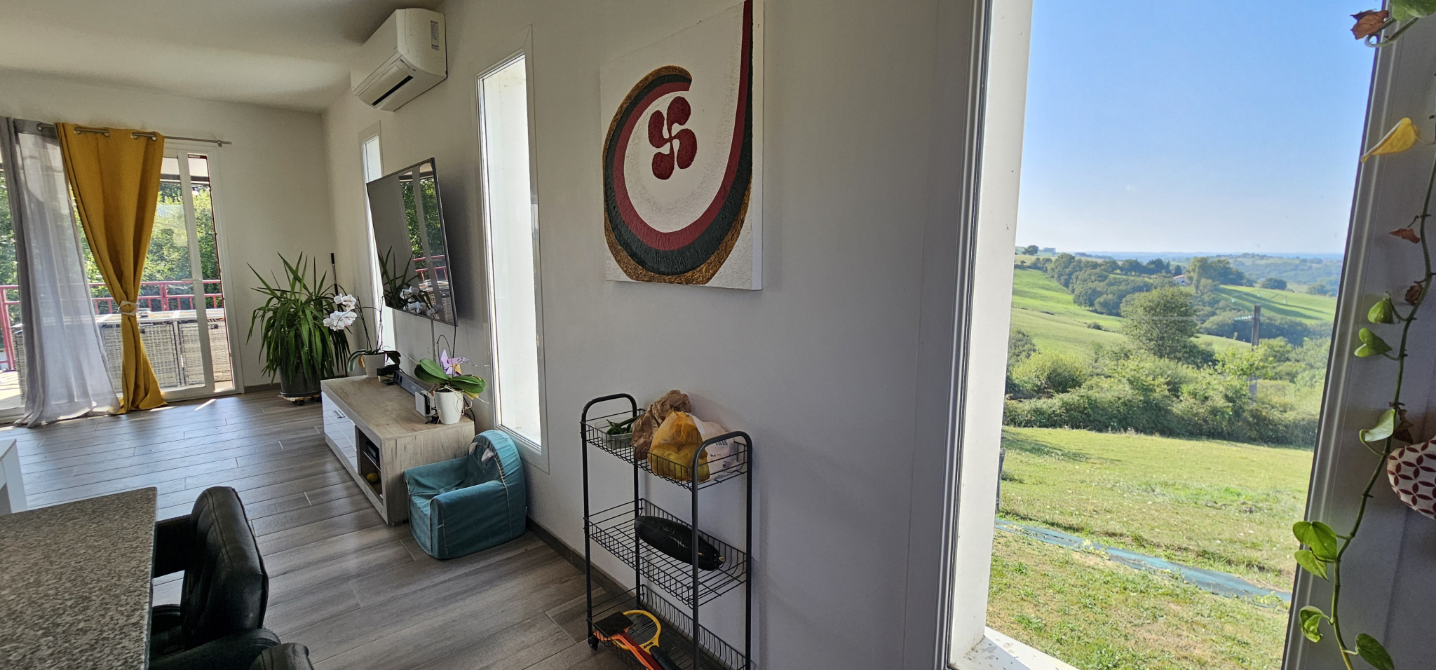Cette villa indépendante de type 5 est située sur les hauteurs de BARDOS, bénéficiant ainsi d’une vue exceptionnelle au calme de la campagne et à quelques minutes en voiture des commerces du bourg.