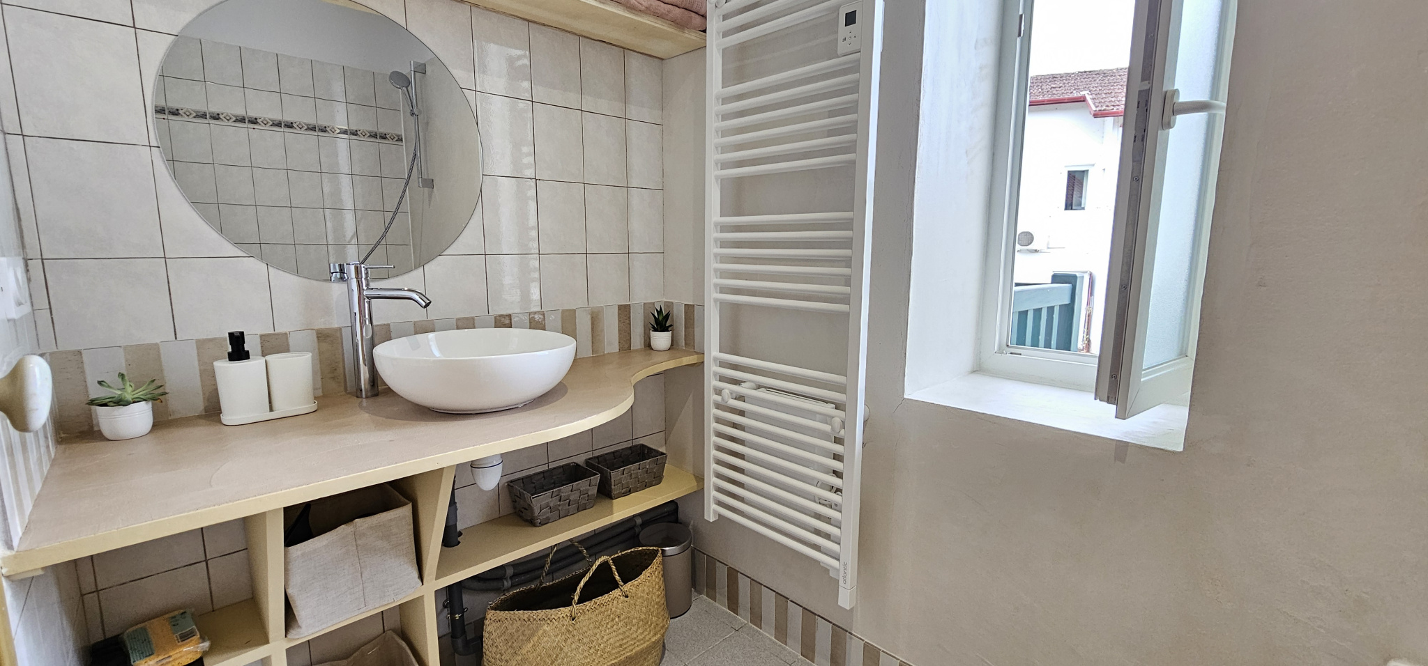 Cette magnifique maison bénéficiant d’une vue exceptionnelle sur nos belles montagnes Basque, est située au calme d’une ruelle, à moins de 10 minutes à pied des commerces du centre ville.
