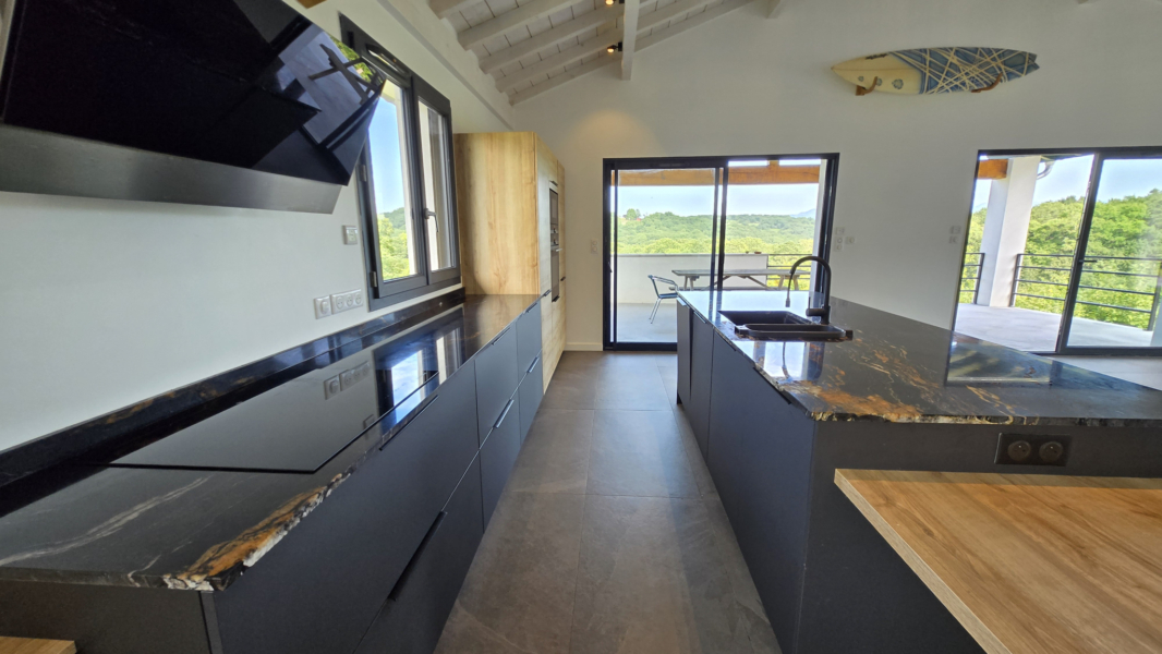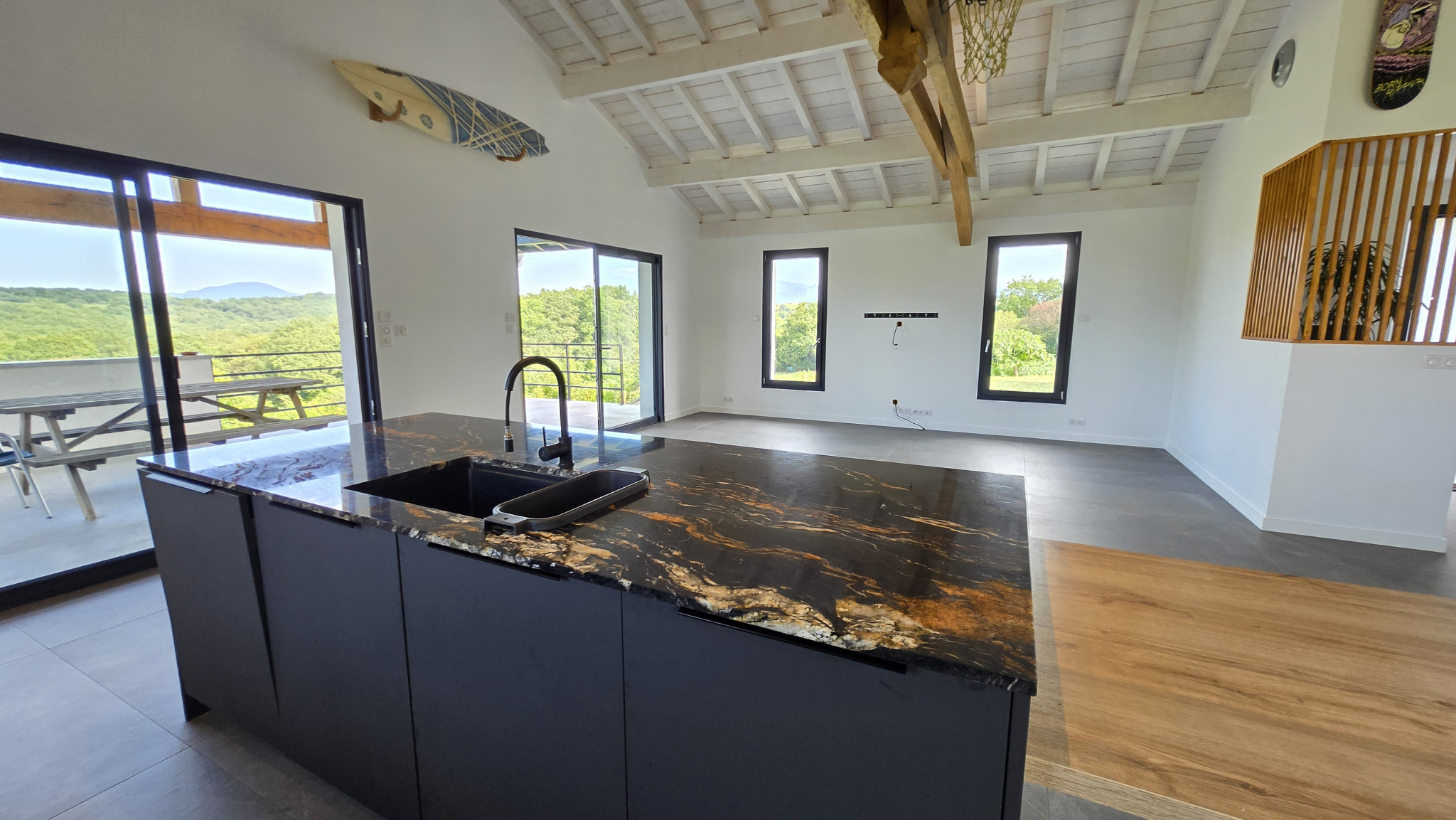 Construite sur un beau terrain plat d’environ 2000m2, la maison de plain pied se compose d’une immense pièce à pièce à vivre très lumineuse de 65 m2 qui bénéficie d’une superbe cuisine américaine en marbre, le tout ouvrant sur la terrasse ombragée exposée sud et offrant une superbe vue sur la nature Basque luxuriante. Un couloir dessert un coin nuit bénéficiant de 5 belles chambres dont une suite parentale avec douche vasque, wc et dressing, un cellier avec branchement machine à laver, une deuxième salle d’eau avec wc, un wc indépendant. Une deuxième terrasse couverte vient compléter de logement d’exception loué dans le cadre d’un bail meublé en conformité avec la législation (liste officielle du service public).