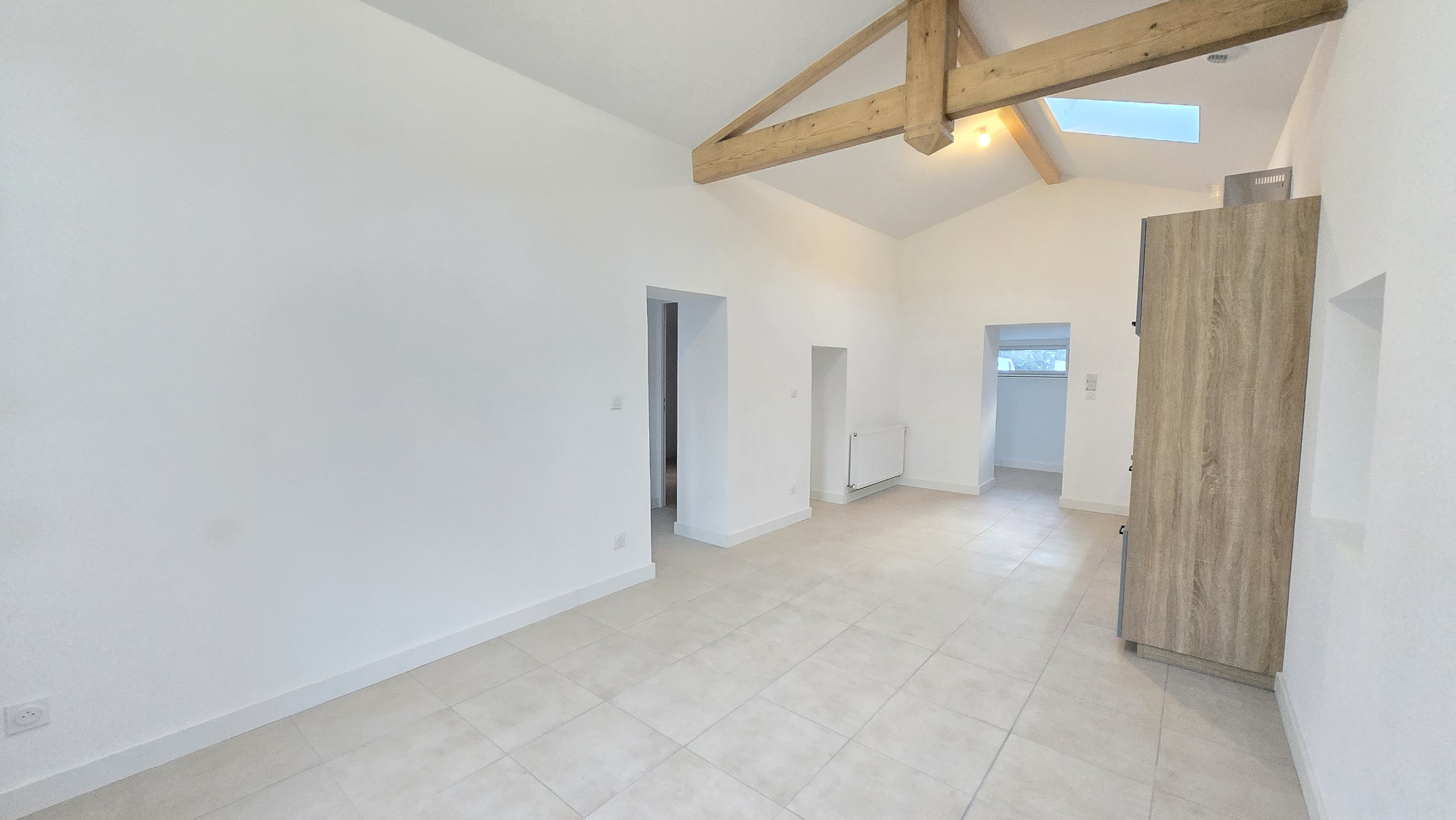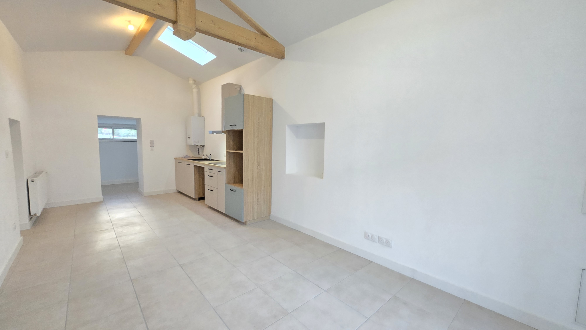 Il se compose d’une entrée sur dégagement desservant un séjour avec cuisine aménagée, une salle de bains avec wc, une chambre avec placard aménagé et une terrasse.